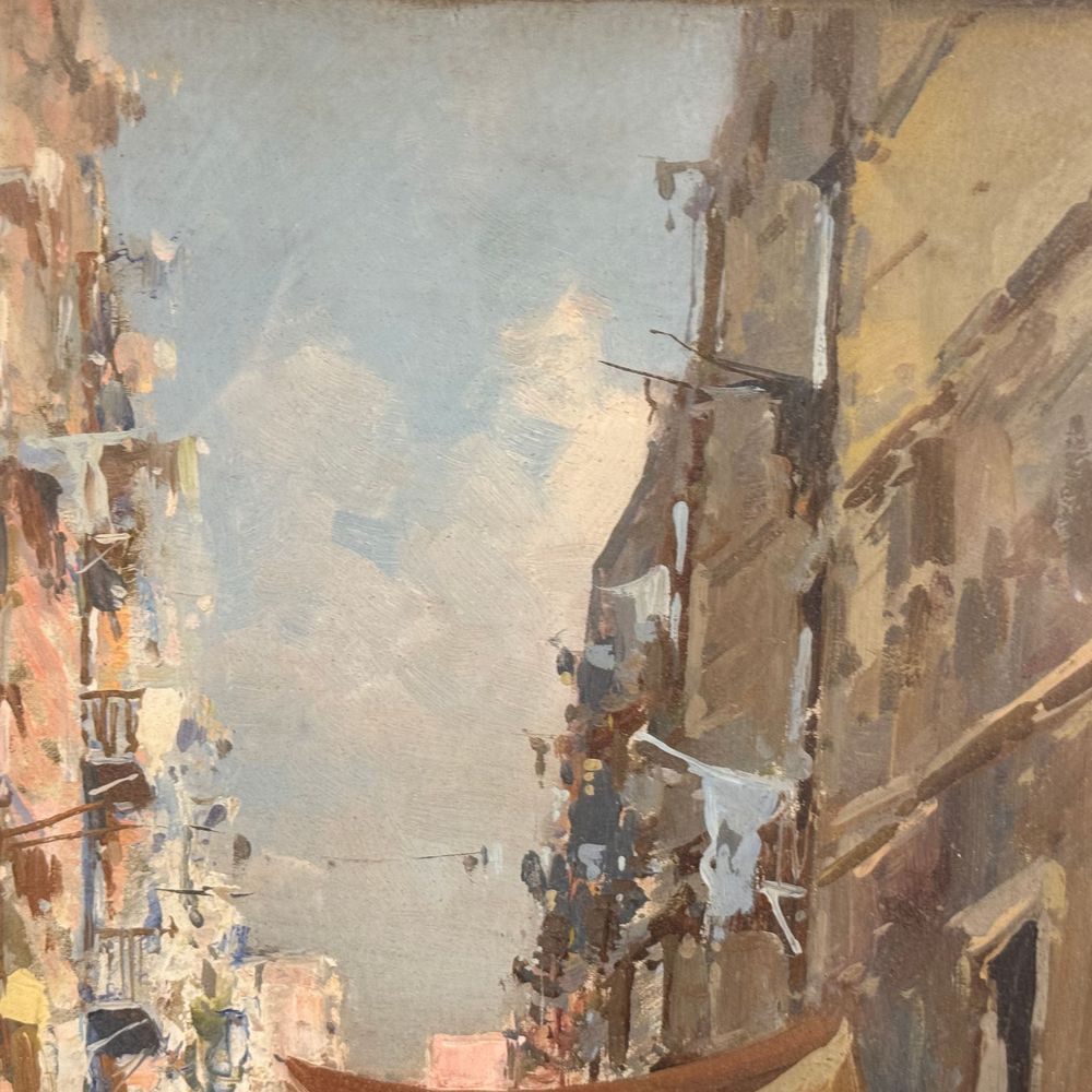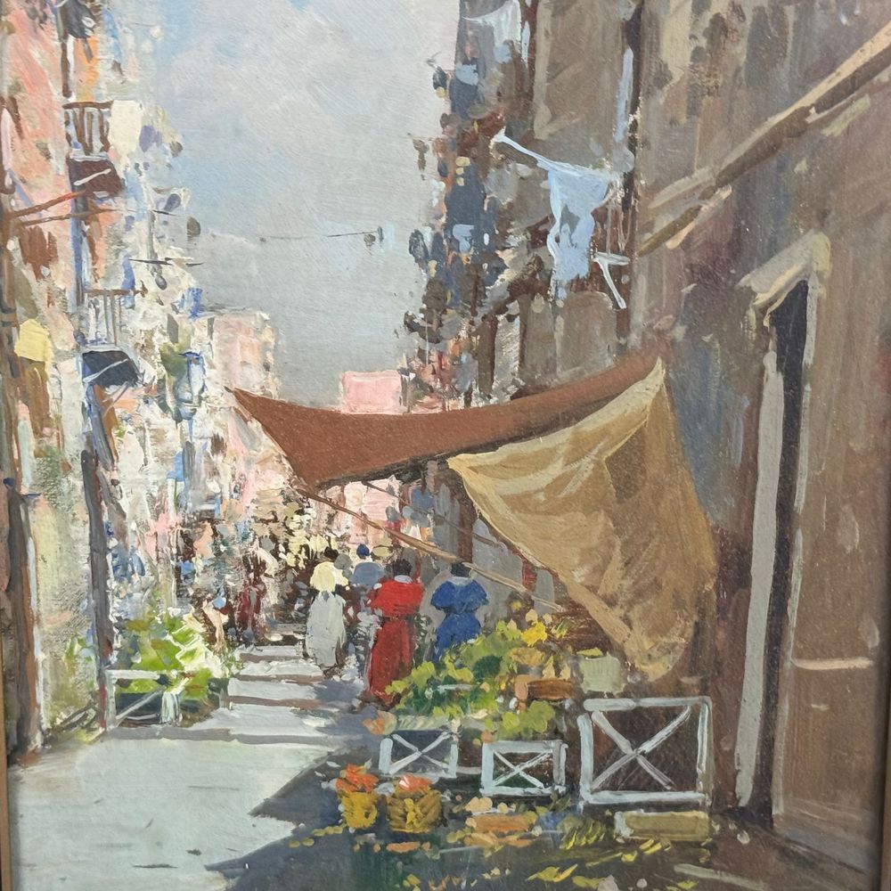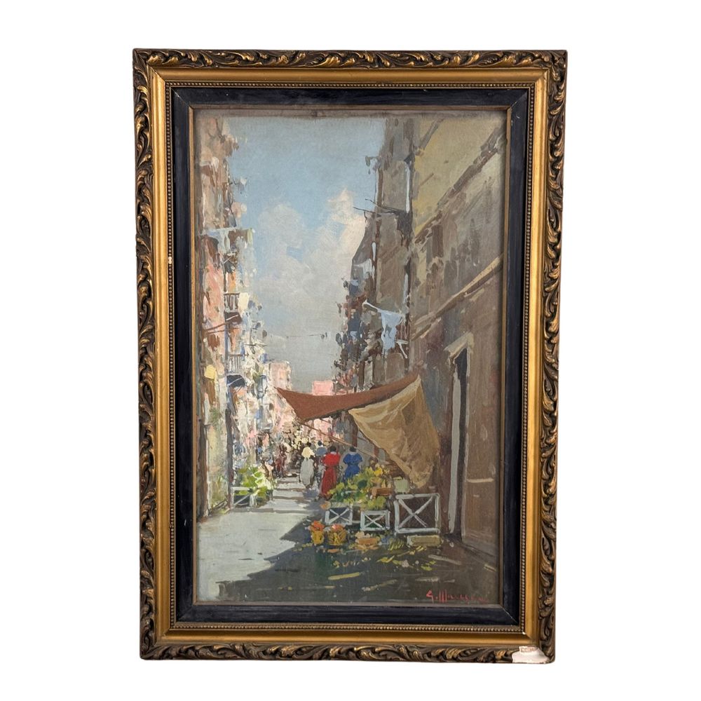 Dipinto olio su tela, periodo prima metà del XX secolo scuola Italiana, raffigurante Strada napoletana. Dimensioni interno cornice: 30x45 cm. Dimensioni compreso cornice: 36x53 cm. Reca firma in basso a destra da G. Maresca .Opera in buone condizioni.