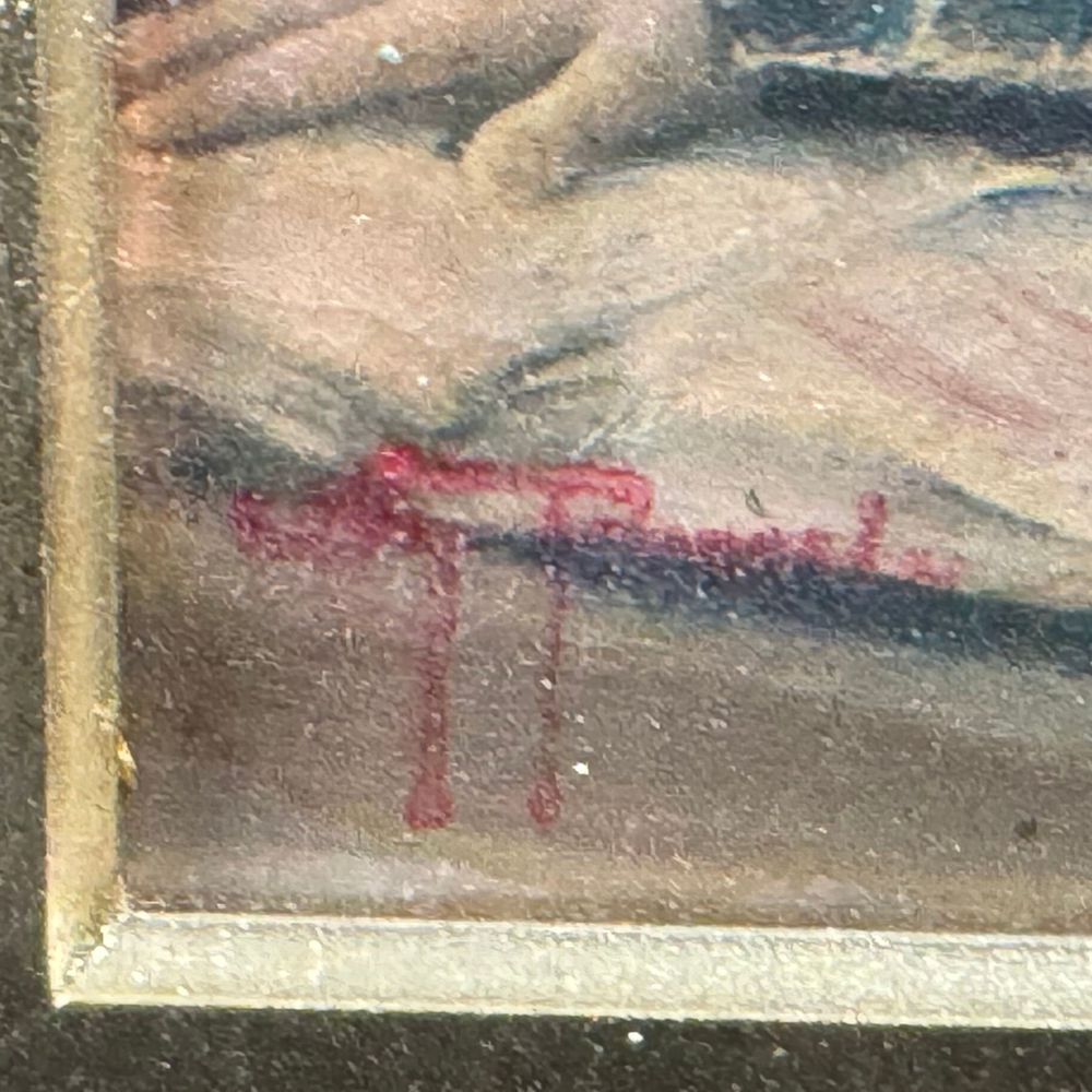 Dipinto olio su cartoncino, periodo XX secolo scuola italiana, raffigurante Bambina in lettura. Dimensioni interno cornice: 14x20 cm. Dimensioni compreso cornice: 31,5x37,5 cm. Reca firma in basso a sinistra da Giovanni Prassi. Opera in buone condizioni.