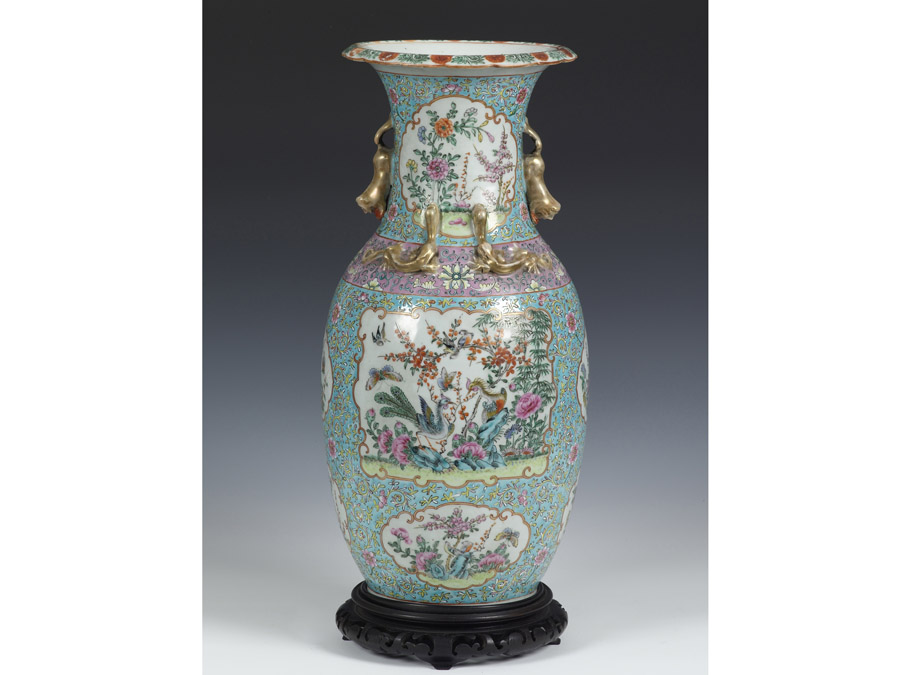 Cina (XX secolo) Vaso in porcellana base in legno Altezza 46 cm