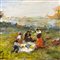 Dipinto olio su tavola, periodo XX secolo scuola italiana, raffigurante "La scampagnata". Dimensioni interno cornice: 25x35 cm. Dimensioni compreso cornice: 53x43 cm. Reca firma in basso a sinistra da Gaetano Bocchetti. Opera in buone condizioni.