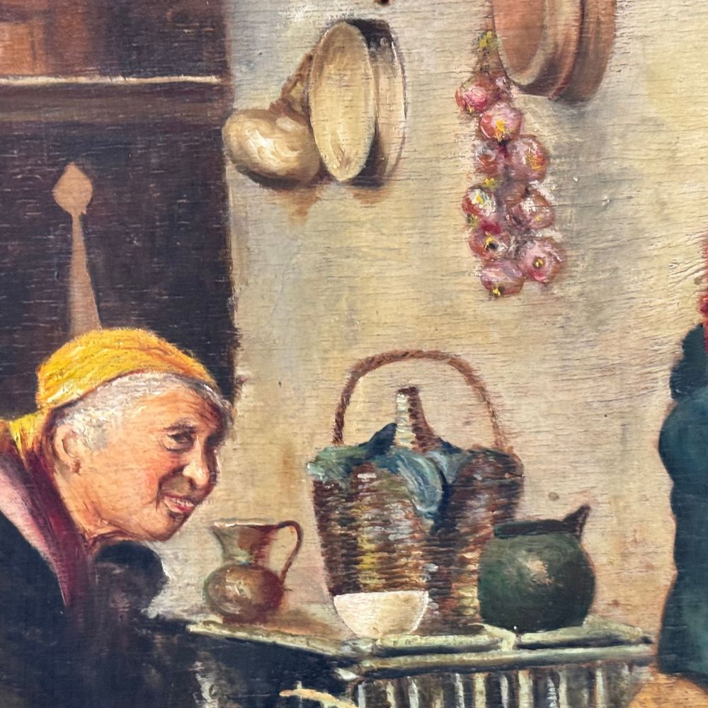 Dipinto olio su tavola, periodo XX secolo scuola Italiana, raffigurante Scena interna con personaggi. Dimensioni interno cornice: 54x37 cm. Dimensioni compreso cornice: 74x57 cm. Firma in basso a destra di difficile lettura. Opera in buone condizioni.