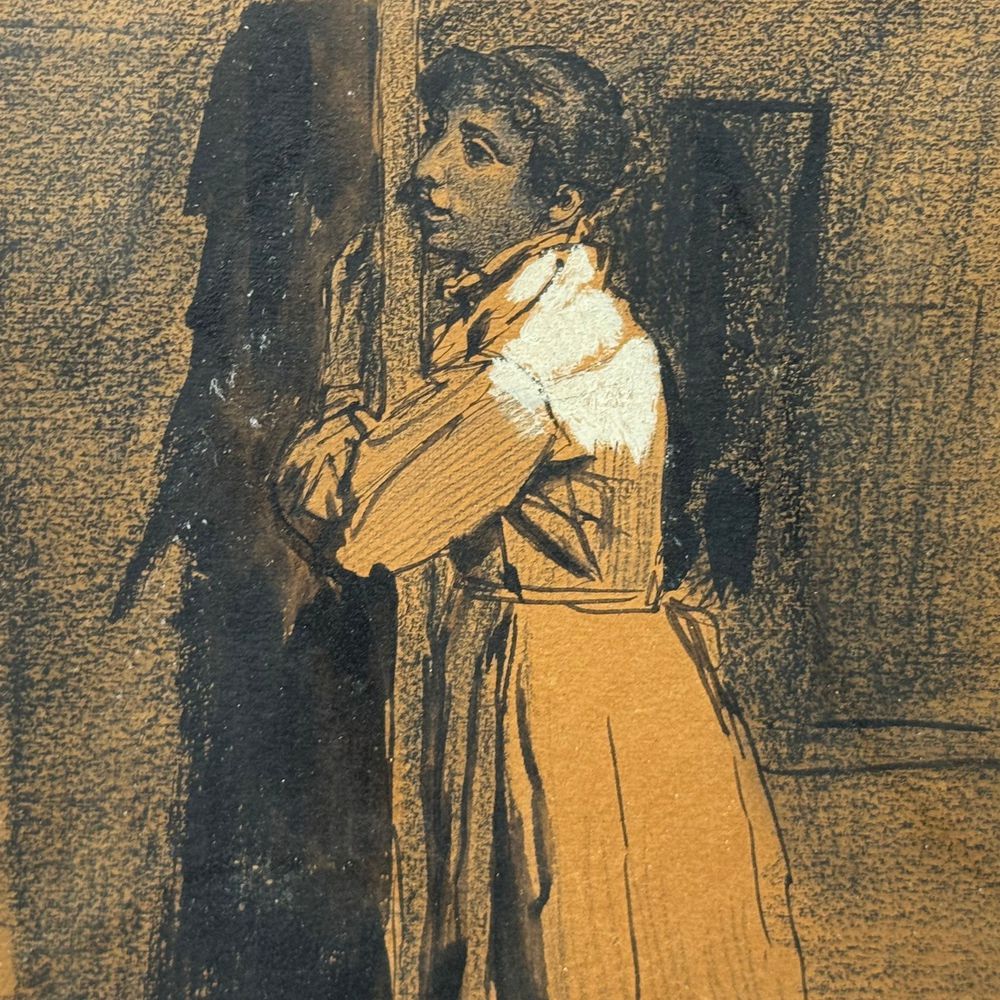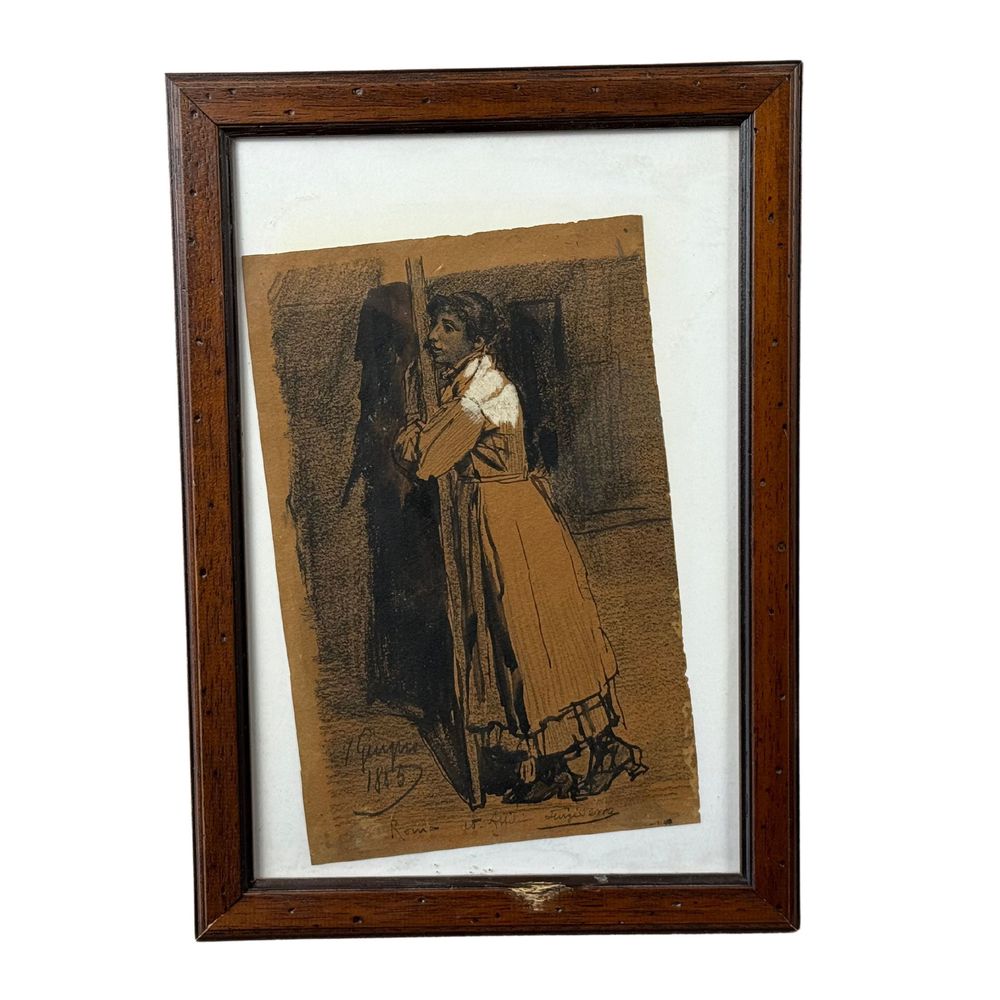 Disegno su carta, periodo XIX secolo scuola Italiana, raffigurante Soggetto femminile. Dimensioni interno cornice: 15x24 cm. Dimensioni compreso cornice: 24x34 cm. Firmato in basso a sinistra da Luigi Serra. Opera in buone condizioni.