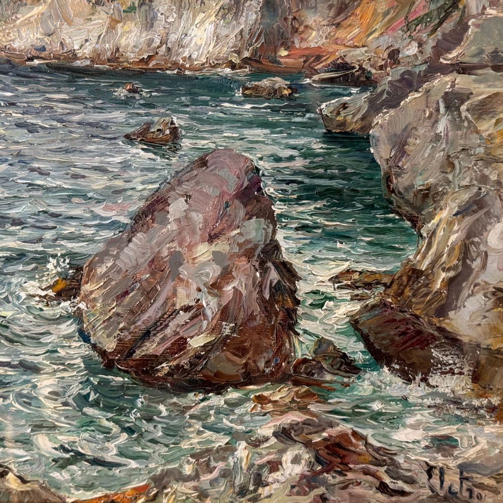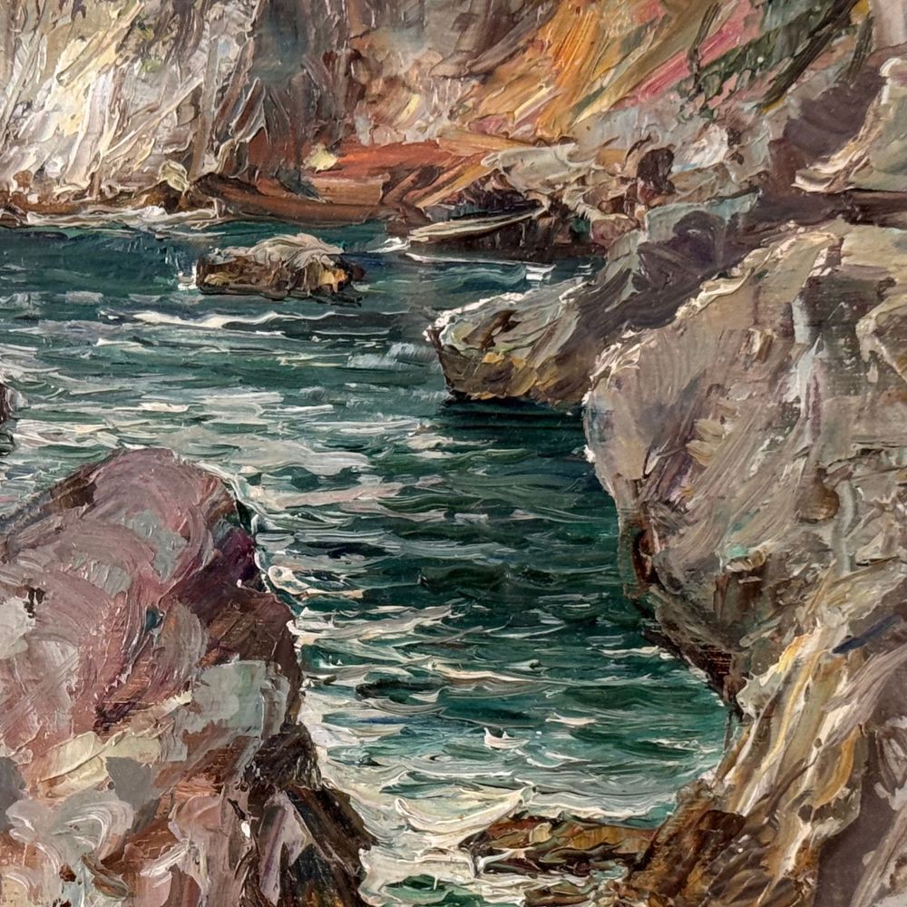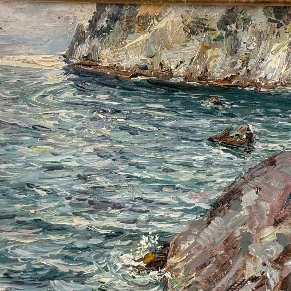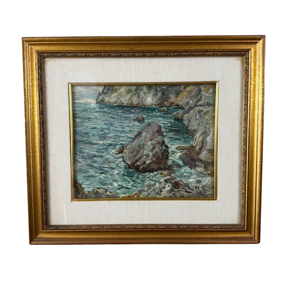 Dipinto olio su tavola, periodo XX secolo scuola Italiana, raffigurante Scorcio di marina. Dimensioni interno cornice: 31x24 cm. Dimensioni compreso cornice: 46x41 cm. Reca firma in basso a destra di difficile lettura. Opera di straordinaria qualità artistica.