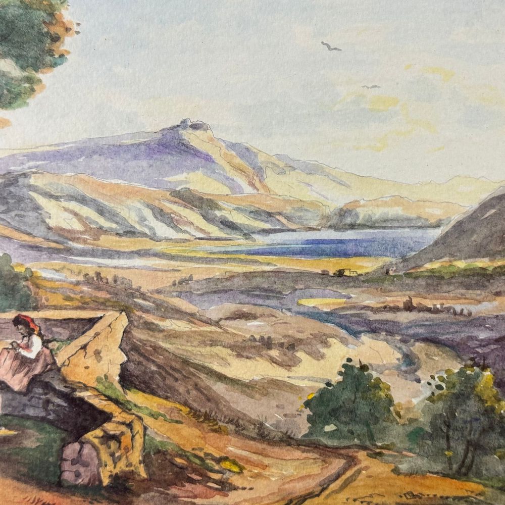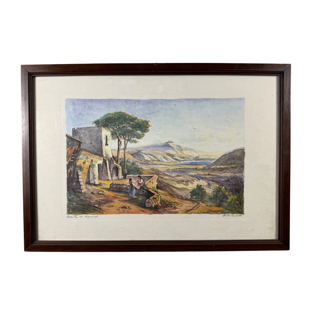 Dipinto tempera su carta, periodo XIX/XX secolo scuola Italiana, raffigurante Veduta di Agnano. Dimensioni interno cornice: 34x22 cm. Dimensioni compreso cornice: 35x50 cm. Reca firma in basso a destra di difficile lettura. Opera in buone condizioni.