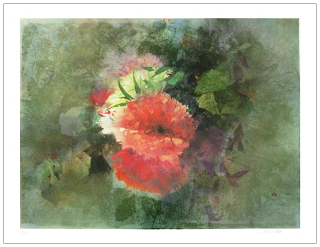 RENZO VESPIGNANI Roma 1924 – Roma 2001 Senza titolo (Rosa) 2000 Litografia a colori es.P.A. Firma in b. a d. + timbro a secco Stamperia d'Arte L'Acquaforte, Roma. (59 x 79,7 foglio - 45,5 x 61,5 lito.) Certificato di autenticità e provenienza Telemarket, Roncadelle.