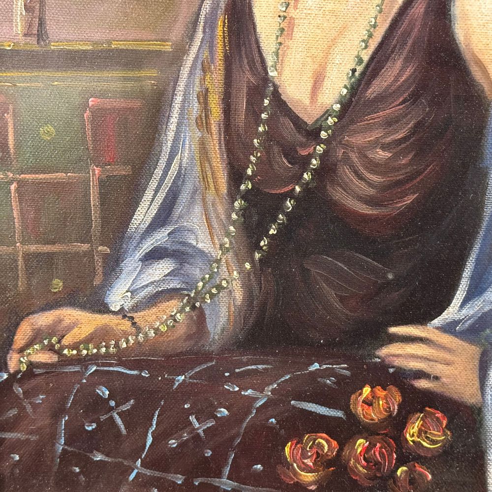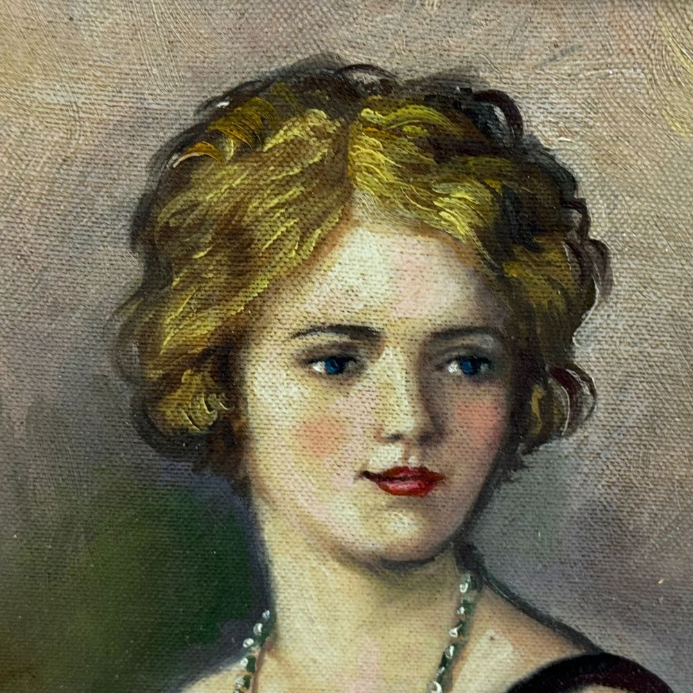 Dipinto olio su tela, periodo XX secolo scuola italiana, raffigurante Ritratto di donna. Dimensioni interno cornice: 30x40 cm. Dimensioni compreso cornice: 35x45 cm. Reca firma in basso a destra di difficile lettura. Opera in buone condizioni.