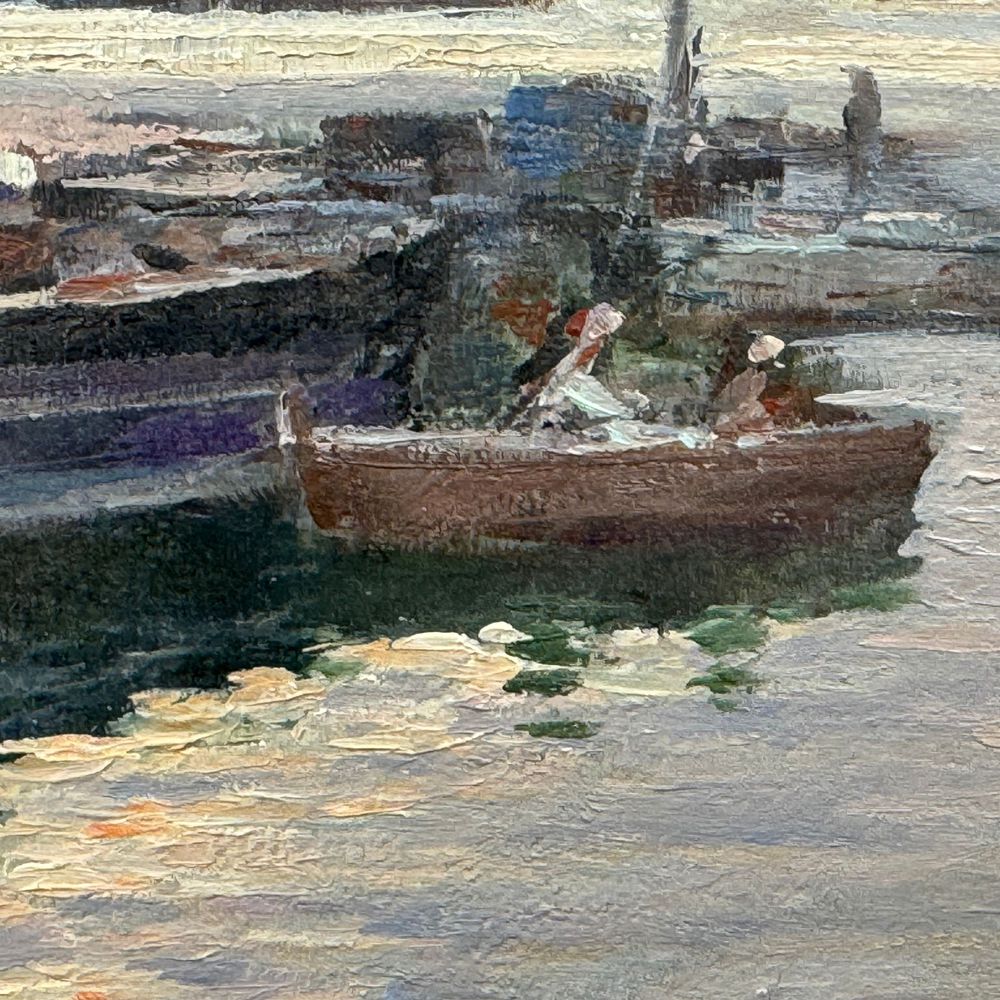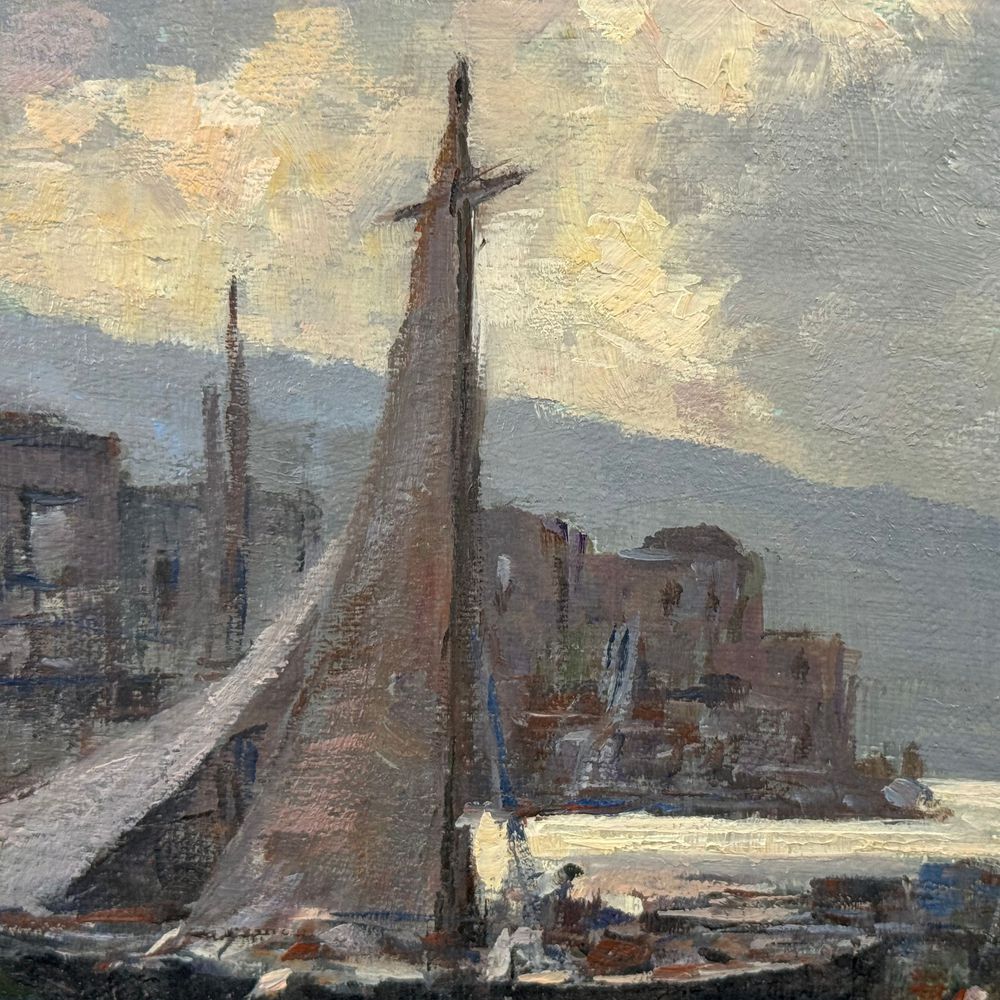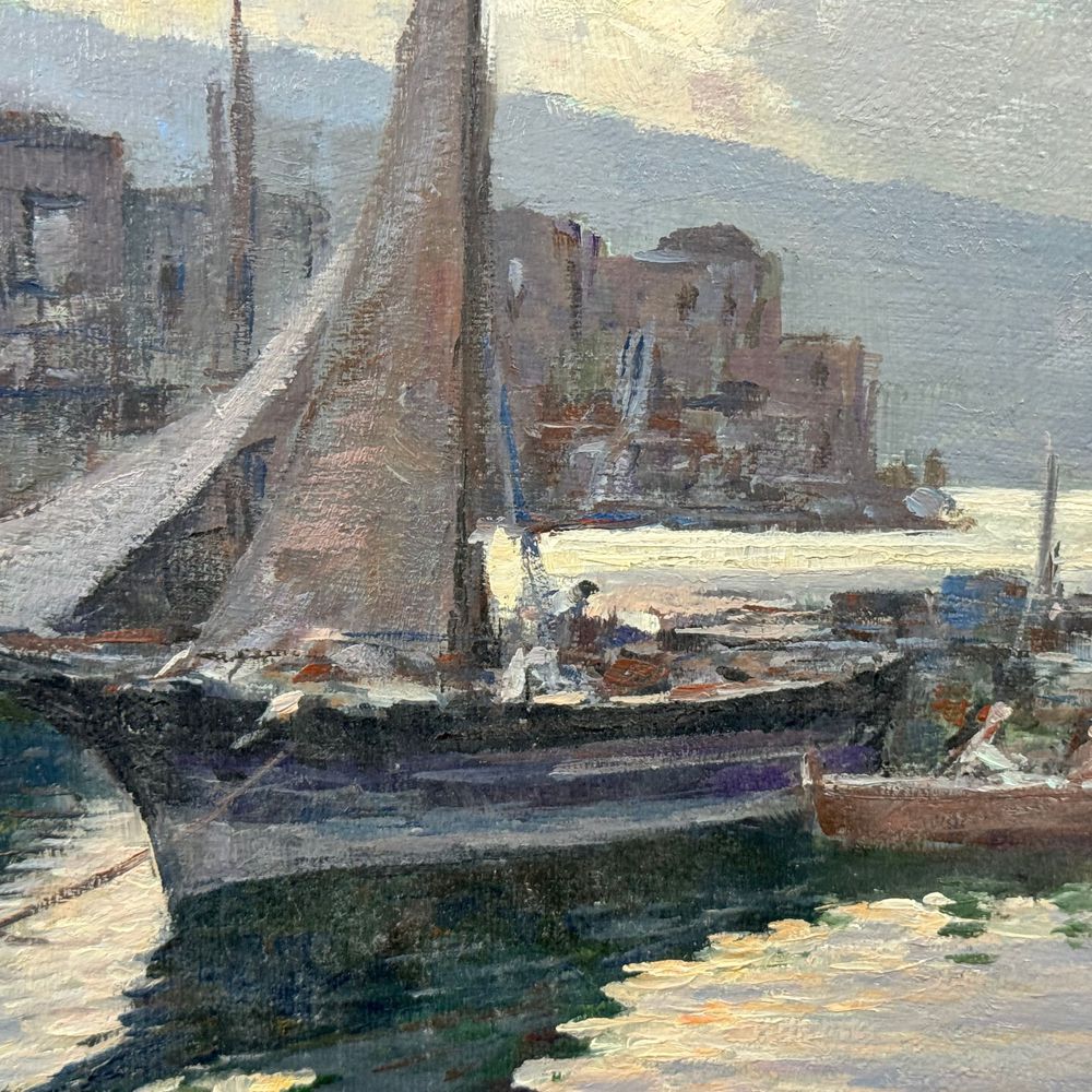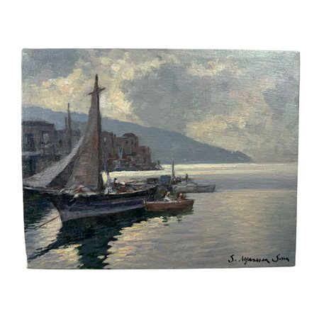 Dipinto olio su tela, periodo XX secolo scuola Italiana, raffigurante Marina. Dimensioni 24x30 cm. Firma in basso a destra da Salvatore Maresca Serra (1956). Opera in buone condizioni.