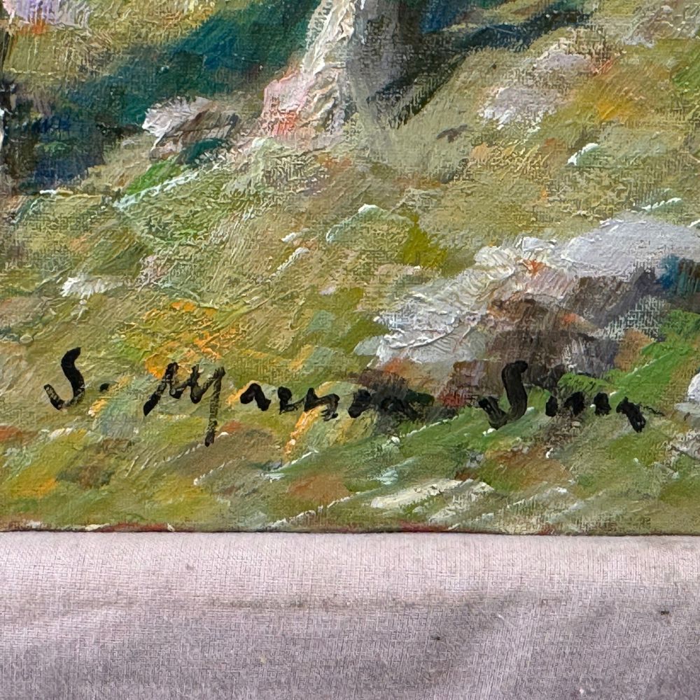 Dipinto olio su tela, periodo XX secolo scuola italiana, raffigurante Paesaggio di montagna. Dimensioni: 40x50 cm. Firma in basso a destra da Salvatore Maresca Serra (1956). Opera in buone condizioni.