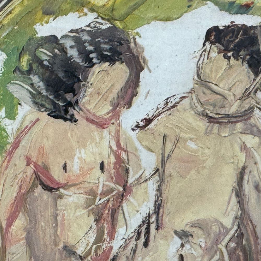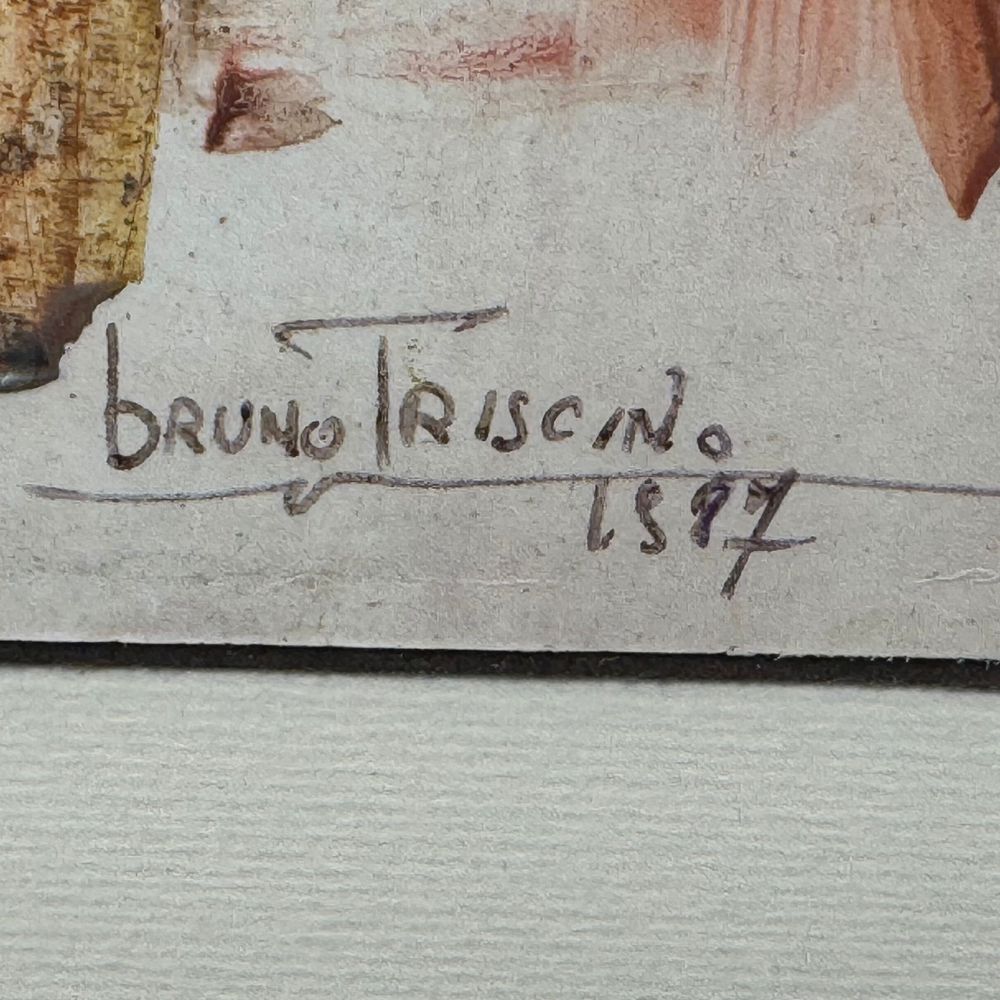Dipinto acquerello su carta, periodo XX secolo scuola Italiana, raffigurante Figure astratte. Dimensioni interno cornice: 25x29 cm, dimensioni compreso cornice: 44x40 cm. Firma in basso a destra da Bruno Triscino. Opera in buone condizioni.