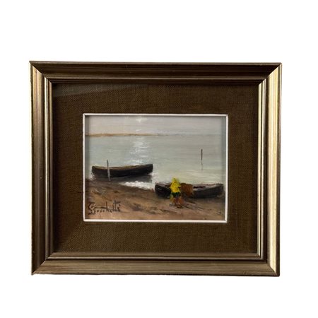Dipinto olio su tavola, periodo XX secolo scuola Italiana, raffigurante Scena con lago. Dimensioni interno cornice: 23x18 cm, dimensioni compreso cornice: 39x34 cm. Reca firma in basso a sinistra da Gaetano Bocchetti (1888 - 1990). Opera in buone condizioni.