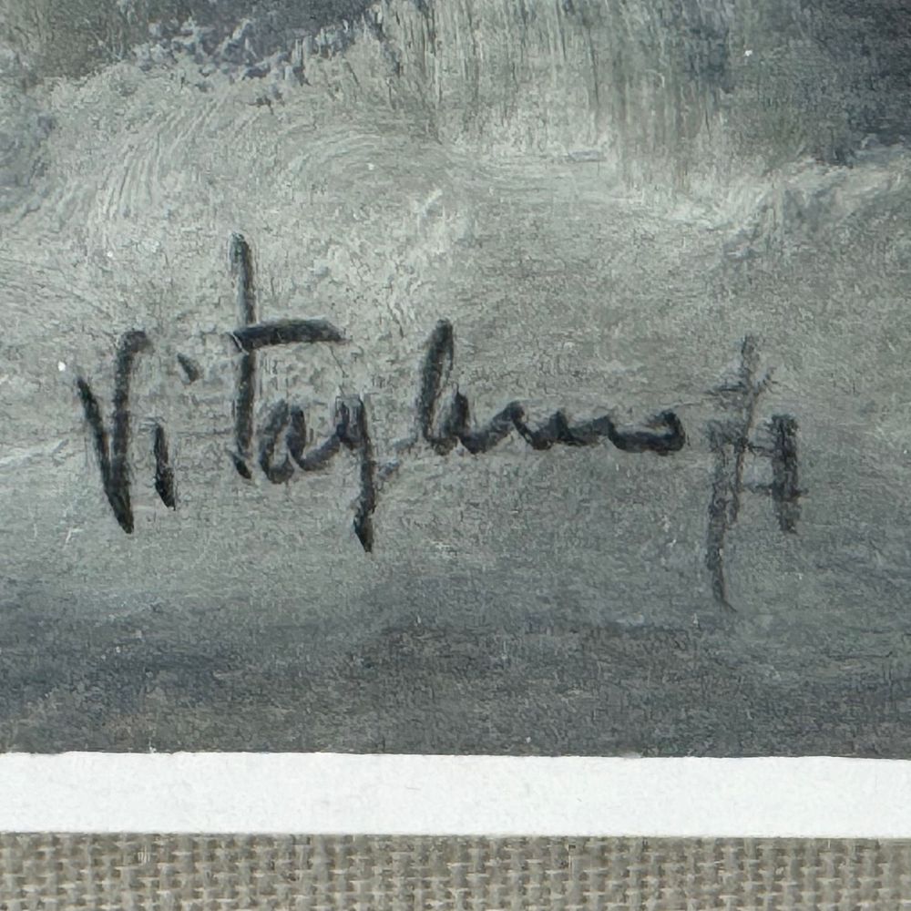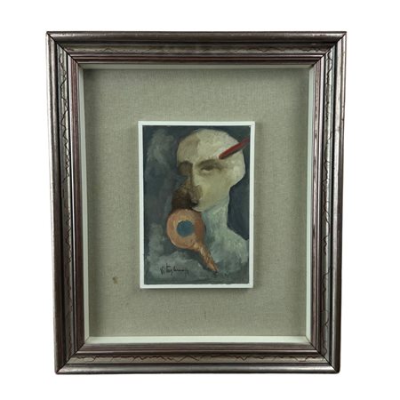 Dipinto olio su pannello, periodo XX secolo scuola Italiana, raffigurante Figura astratta. Dimensioni interno cornice: 12x28 cm. Dimensioni compreso cornice: 33x38 cm. Firma in basso a sinistra da Salvatore Vitagliano ( Valle Caudina 1950). Opera in buone condizioni.