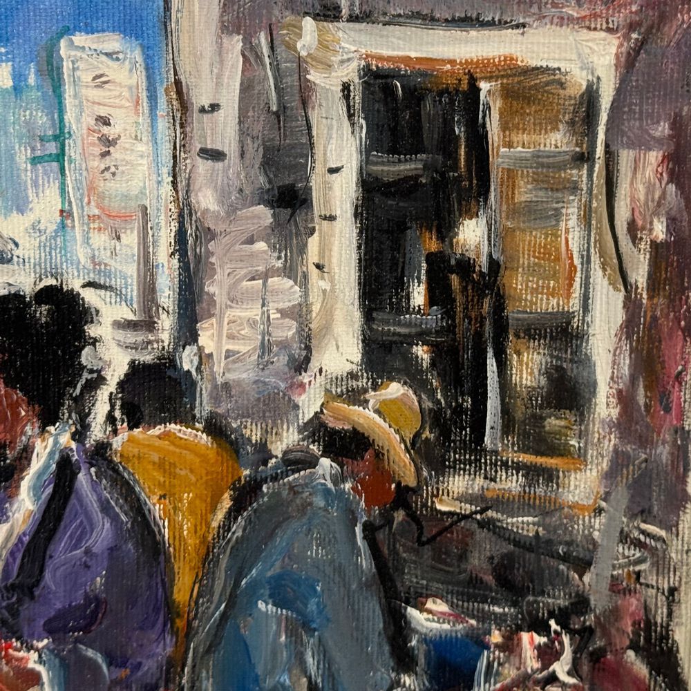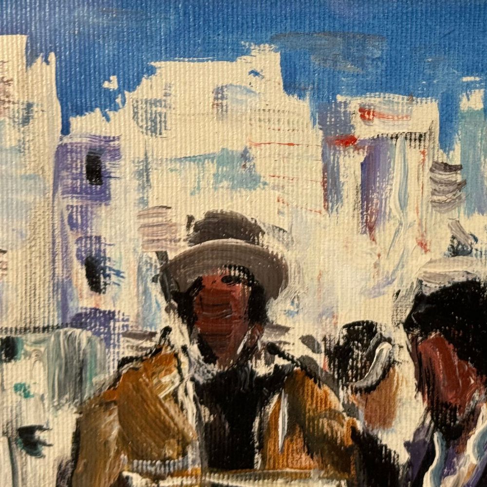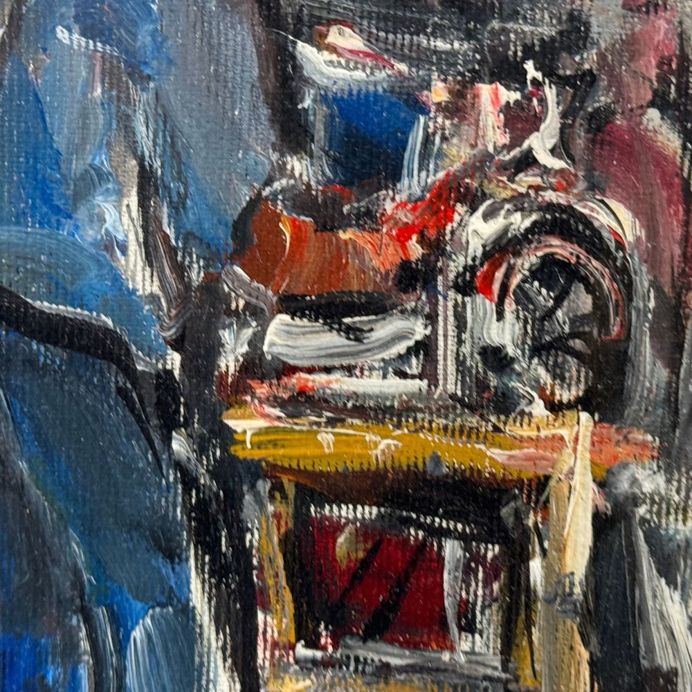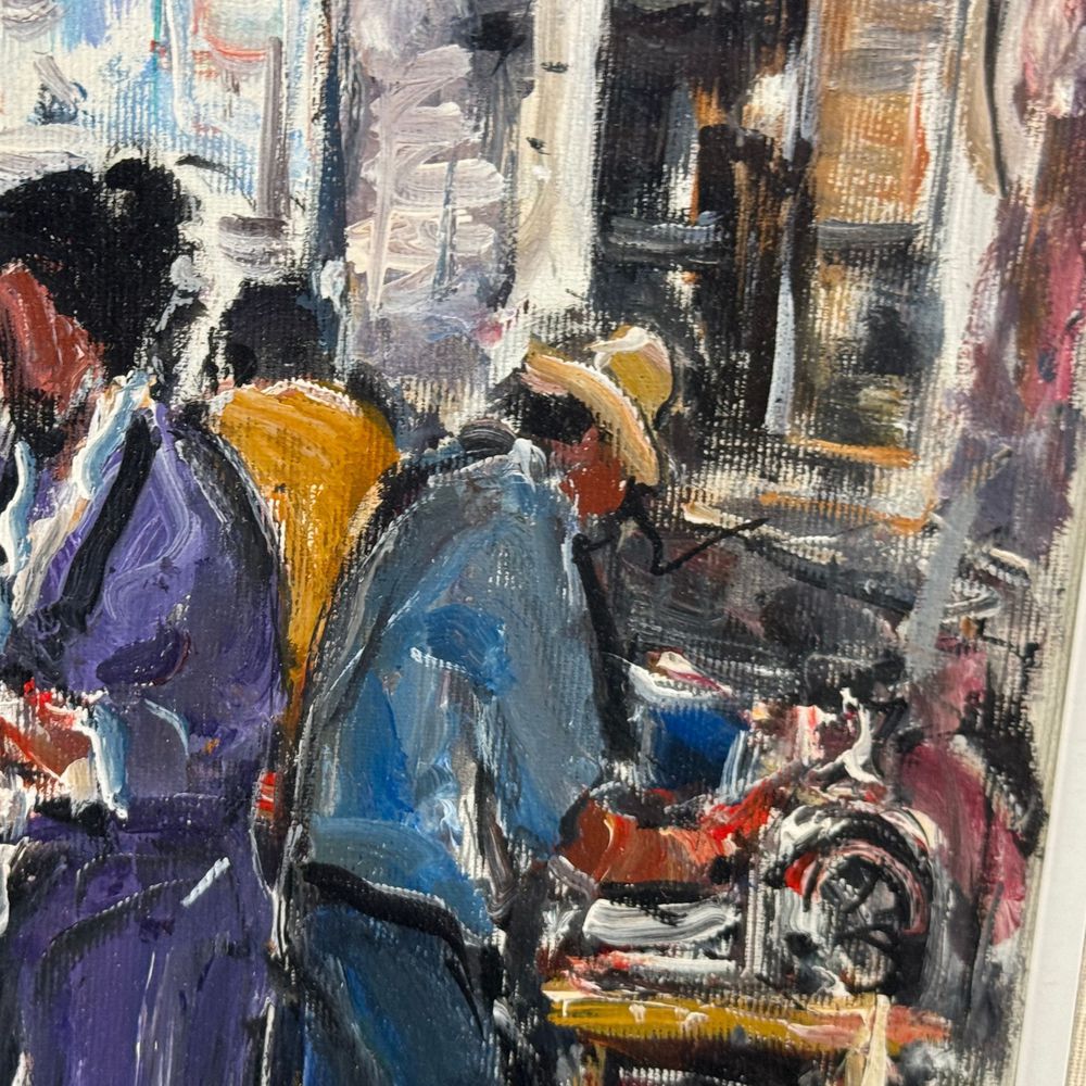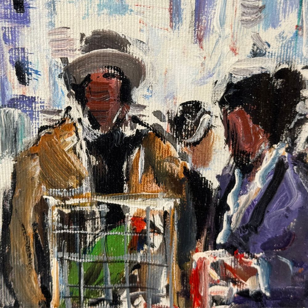 Dipinto olio su cartoncino telato, periodo XX secolo scuola Italiana, raffigurante Personaggi. Dimensioni interno cornice: 30x35 cm. Dimensioni compreso cornice: 45x50 cm. Firma in basso a destra da Radames Toma (1924 - 2002).