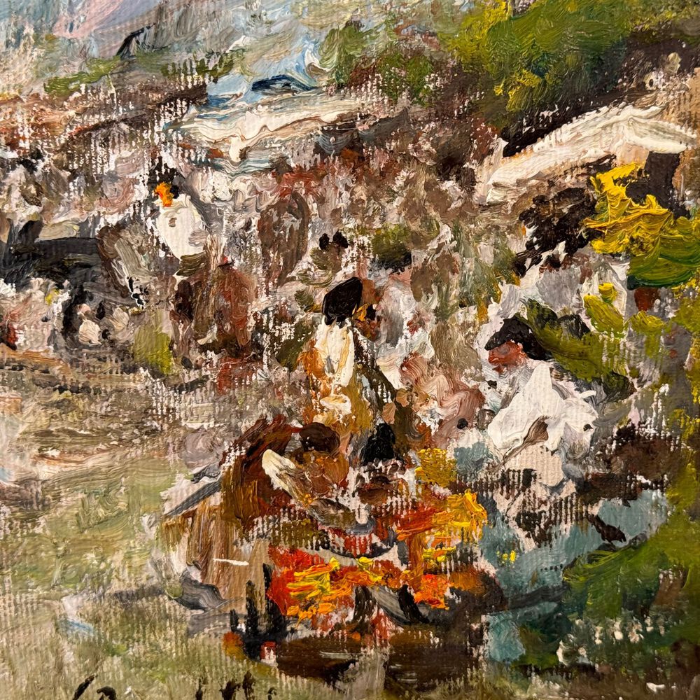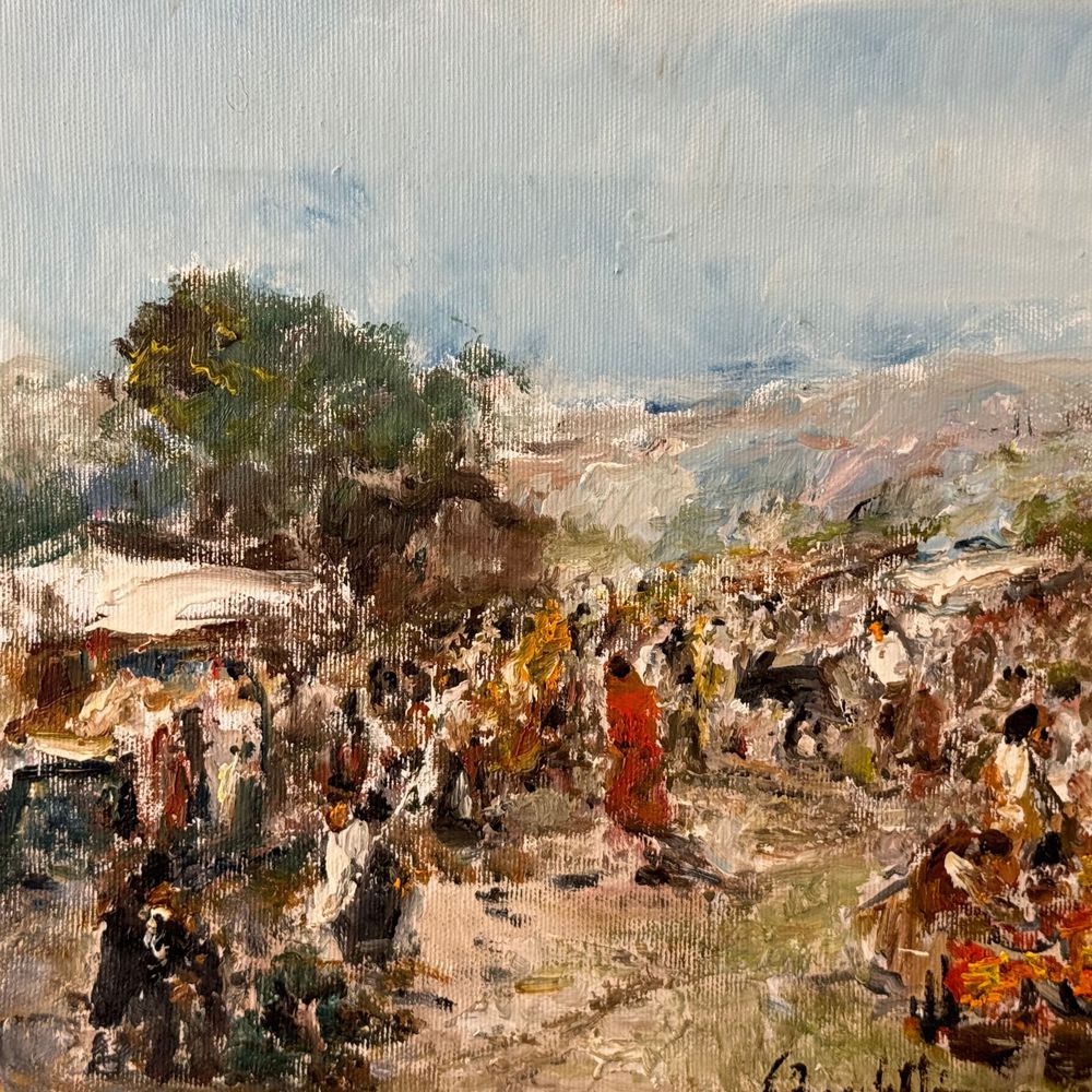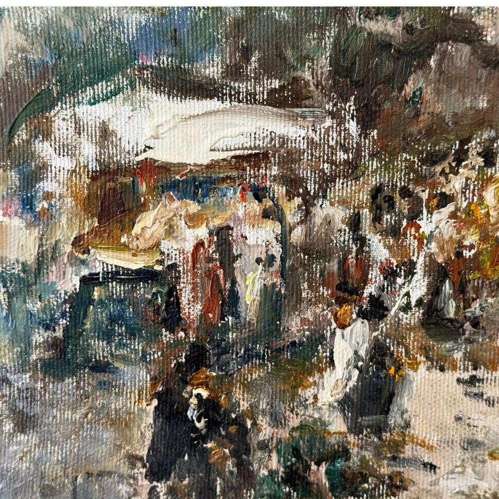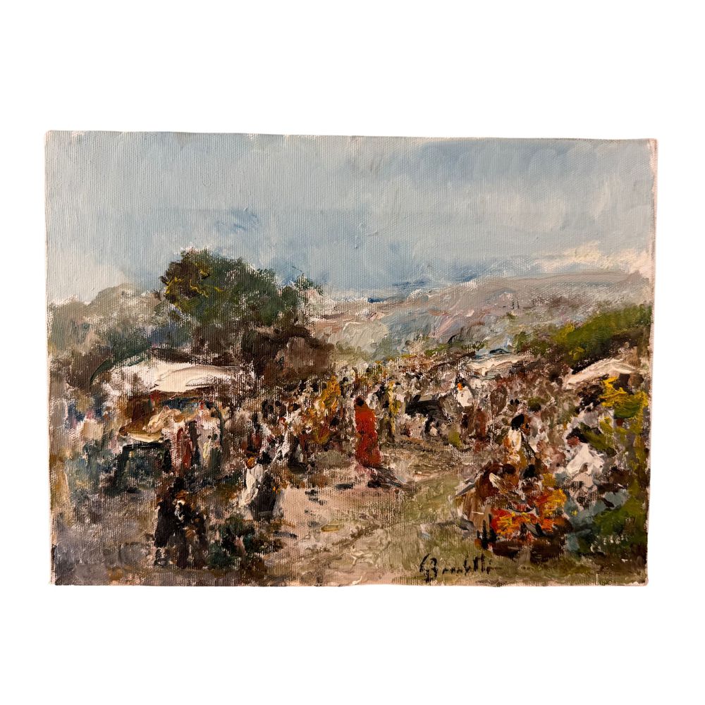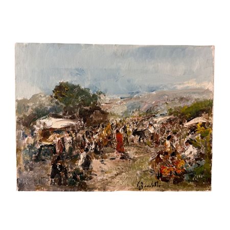 Dipinto olio su tela, periodo XX secolo scuola Italiana, raffigurante Scena di mercato. Dimensioni 40x30 cm. Reca firma in basso a destra da Gaetano Bocchetti (1888 - 1990). Opera in buone condizioni.