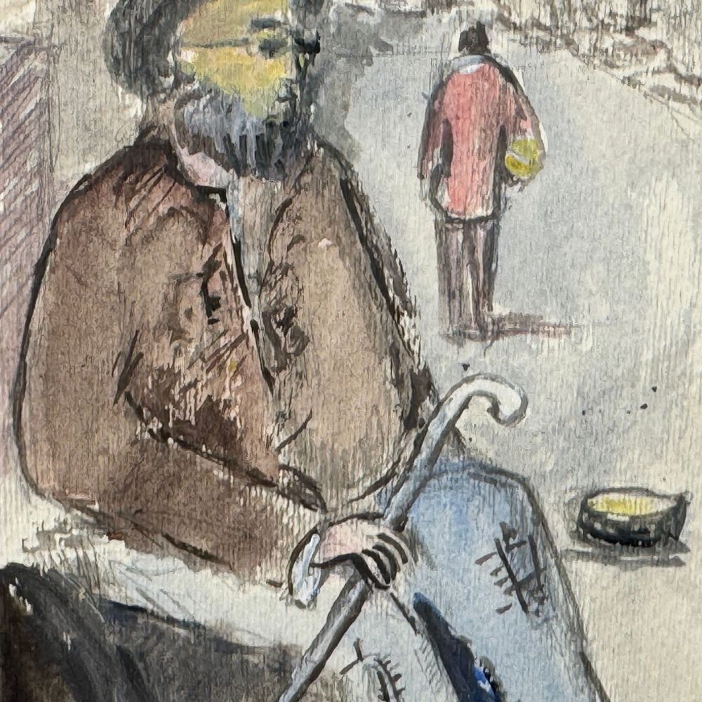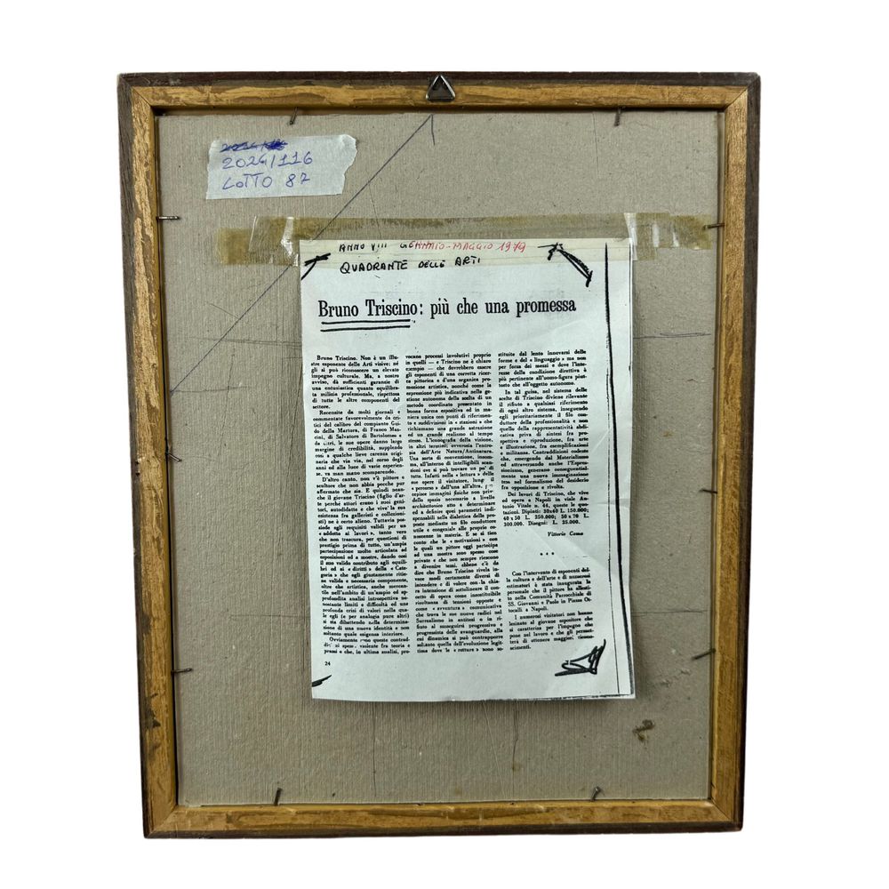 Dipinto tecnica disegno su carta, periodo XX secolo scuola italiana, raffigurante Strada con personaggi. Dimensioni interno cornice: 10x18 cm. Dimensioni compreso cornice: 28x35 cm. Firma in basso a sinistra da Bruno Triscino. Opera in buone condizioni.