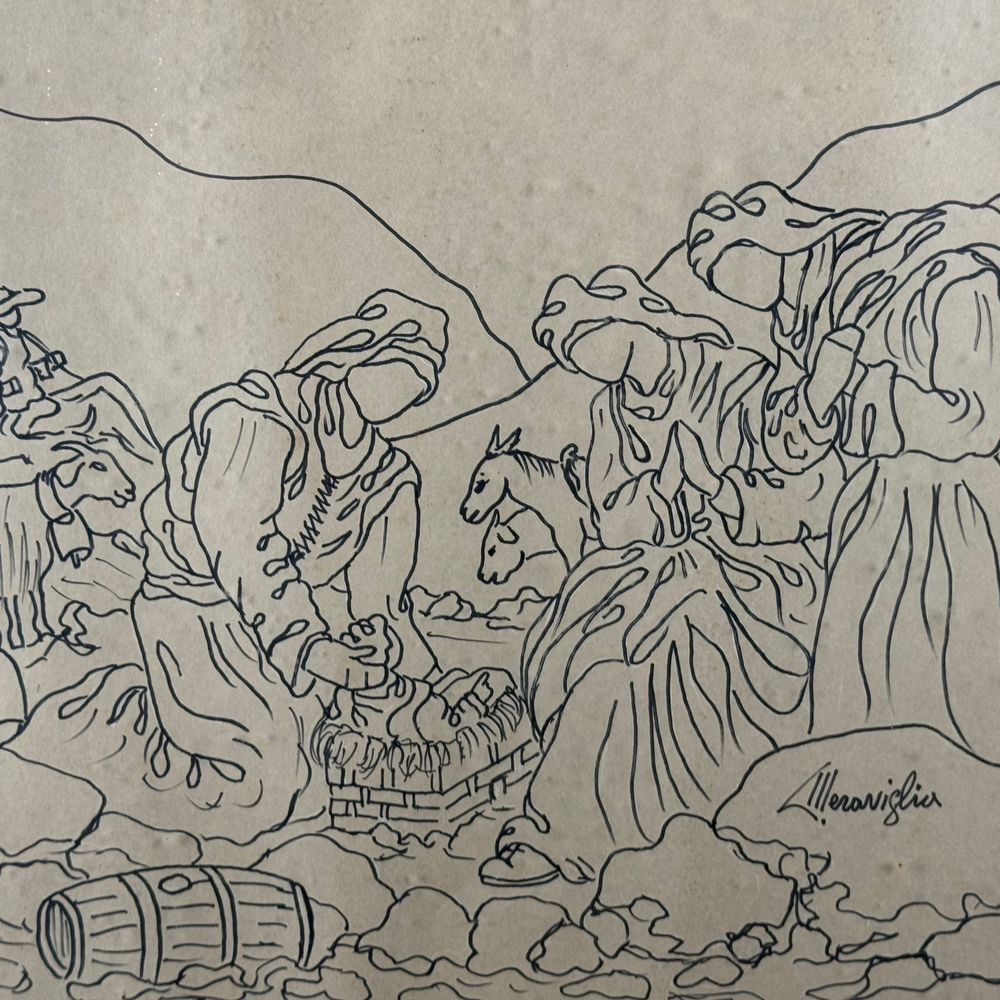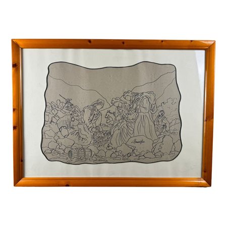 Acrilico su cartoncino monocolore, periodo XX secolo scuola Italiana, raffigurante Scena Biblica, dimensioni interno cornice: 67x47 cm. Dimensioni compreso cornice: 74x54 cm. Firma in basso a destra da Carmine Meraviglia (Napoli 1945). Opera in buone condizioni.