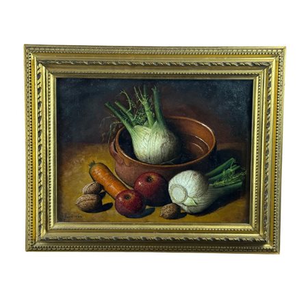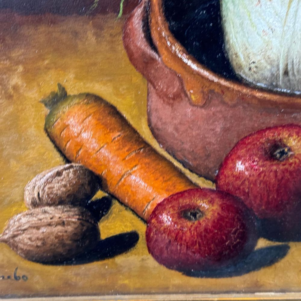 Dipinto olio su cartoncino, periodo XX secolo scuola italiana, raffigurante Natura morta. Dimensioni interno cornice: 40x30 cm, dimensioni compreso cornice: 52x42 cm. Firma in basso a sinistra da Giuseppe Palumbo. Opera in buone condizioni.