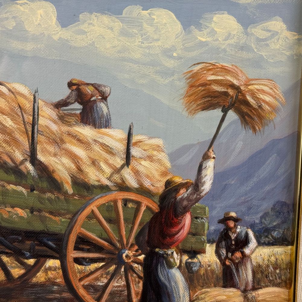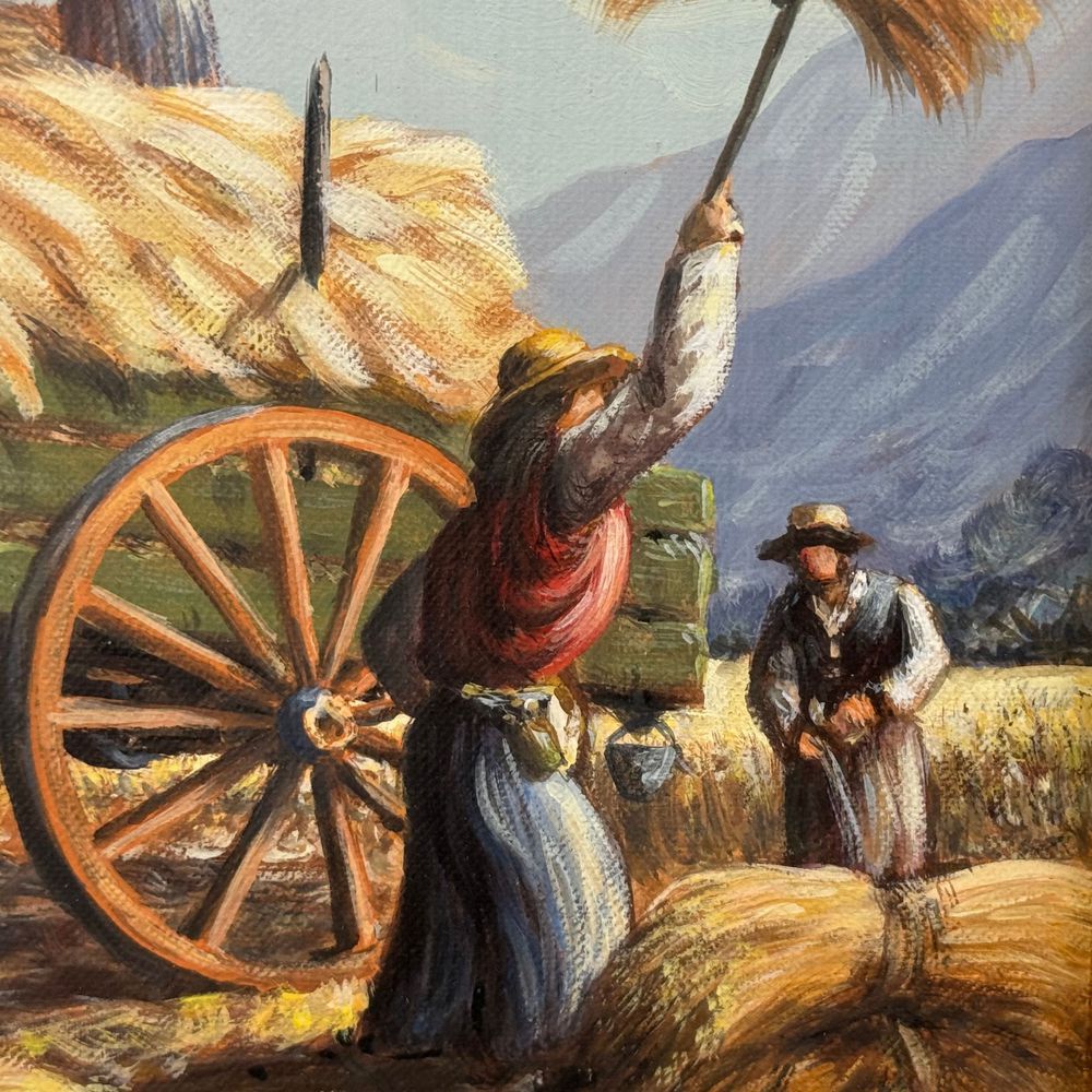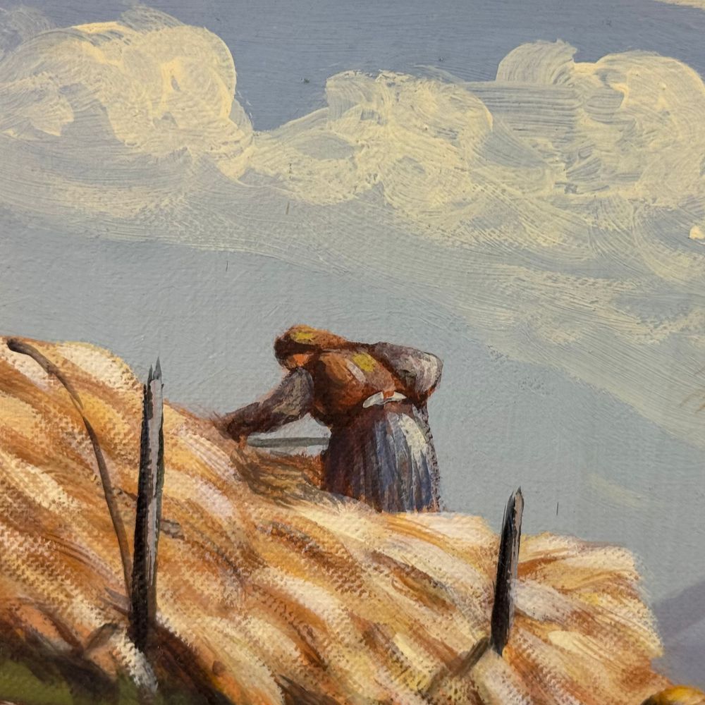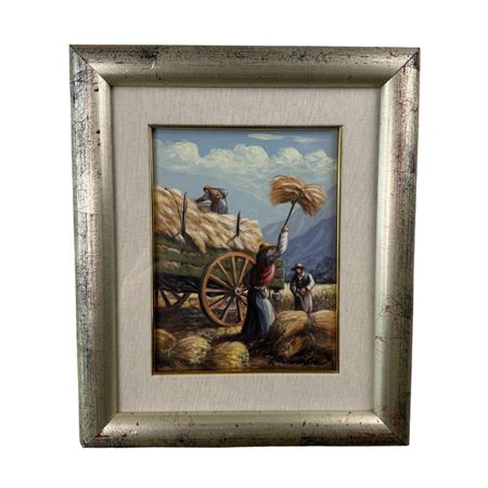 Dipinto olio su pannello, periodo XX secolo scuola italiana, raffigurante Contadini. Dimensioni interno cornice: 18x24 cm, dimensioni compreso cornice: 33x40 cm. Firma in basso a destra da Carmine Meraviglia (Napoli 1945). Opera in buone condizioni.