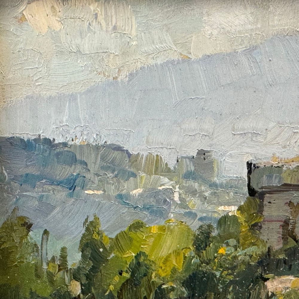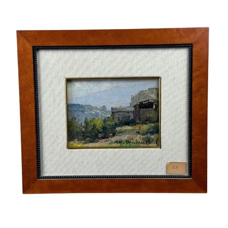 Dipinto olio su tavola, periodo XX secolo scuola italiana, raffigurante Paesaggio. Dimensioni interno cornice: 15x12 cm. Dimensioni compreso cornice: 30x27 cm. Firma in basso a destra da Mario Maresca Serra (Napoli 1912 - 1991). Opera in buone condizioni.