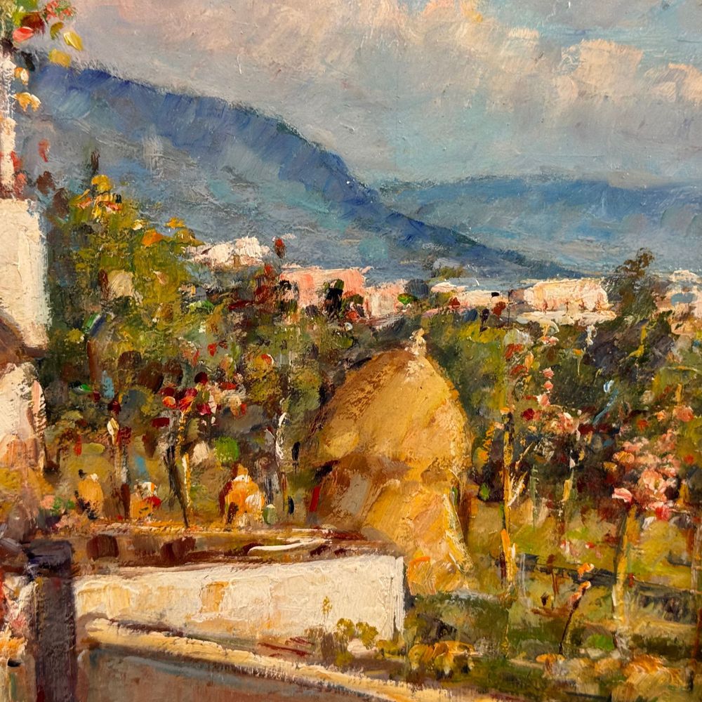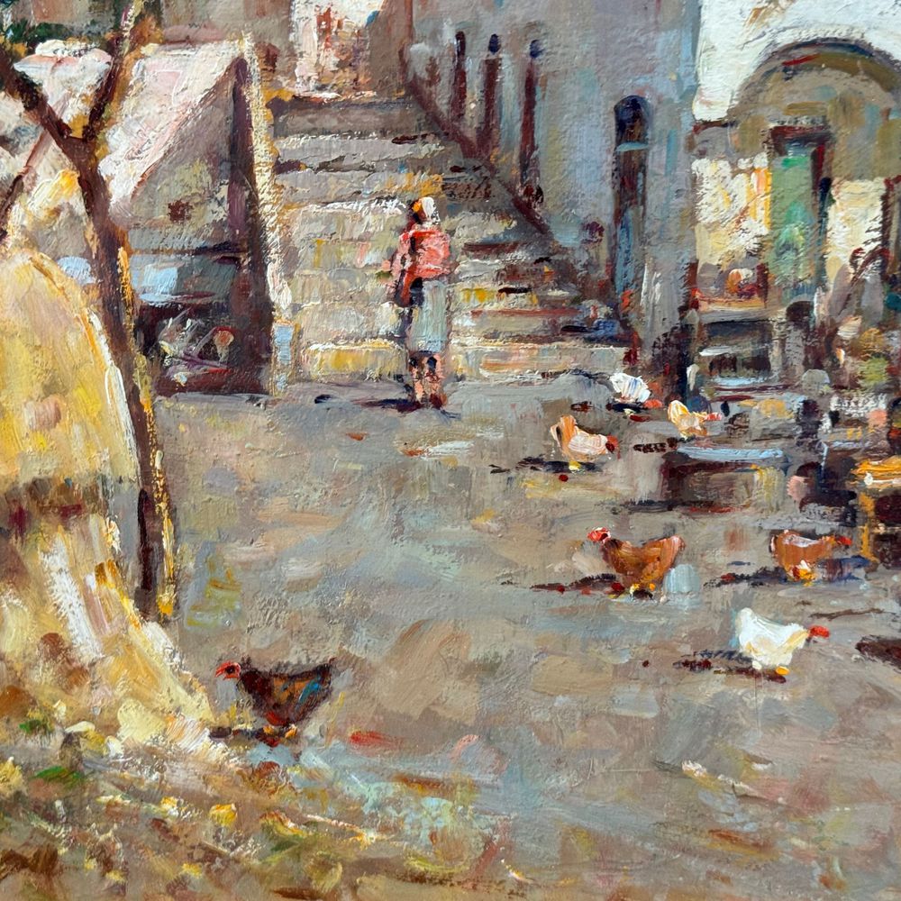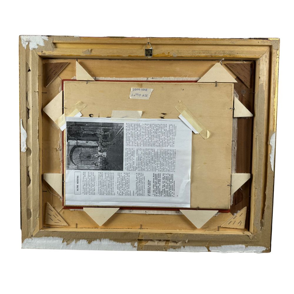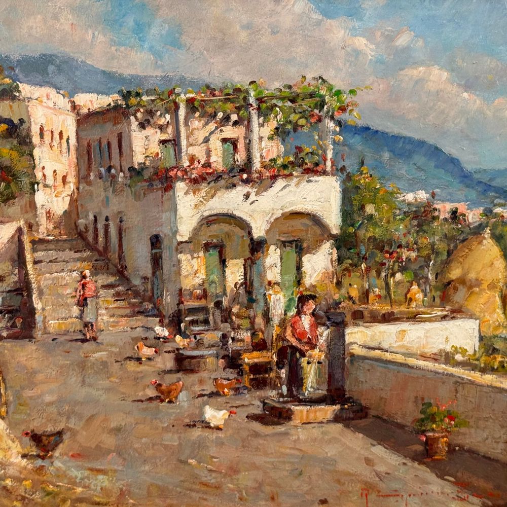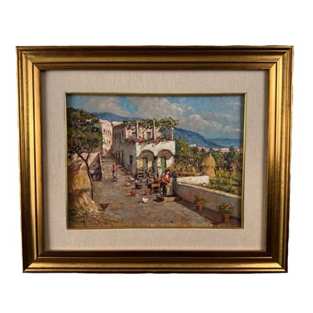 Dipinto olio su tavola, periodo XX secolo scuola Italiana, raffigurante Scorcio di paese. Dimensioni interno cornice: 40x30 cm, dimensioni compreso cornice: 60x50 cm. Firma in basso a destra da Roberto Cipriano Zuccaro. Opera in buone condizioni.