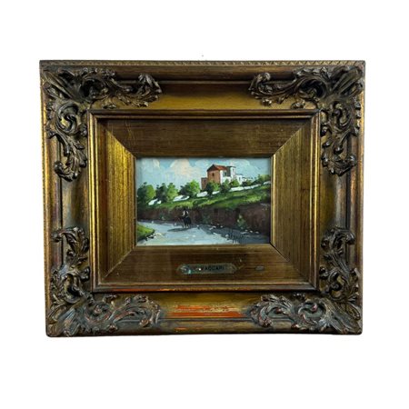 Dipinto olio su pannello, periodo XX secolo scuola Italiana, raffigurante Strada di campagna. Dimensioni interno cornice: 14,5x10 cm. Dimensioni compreso cornice: 35x30 cm. Reca firma in basso a destra da V. Vaccari. Opera in buone condizioni.