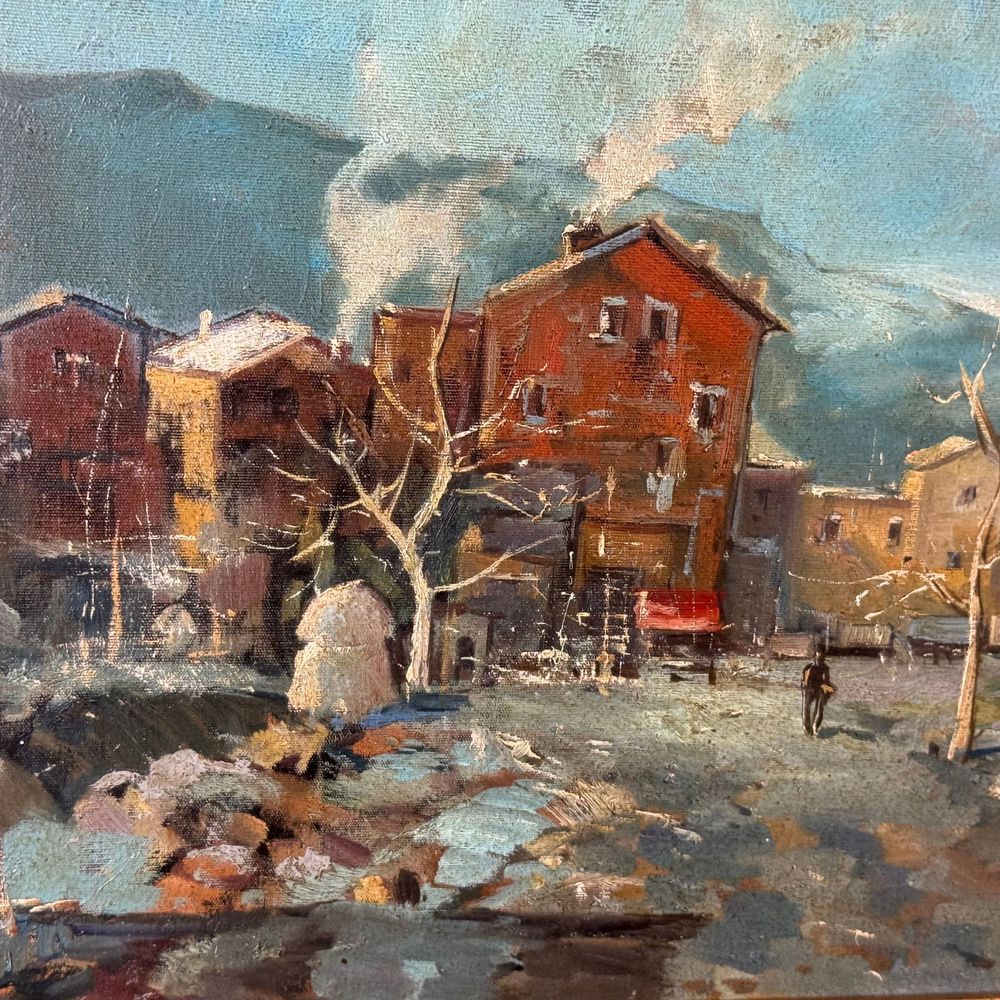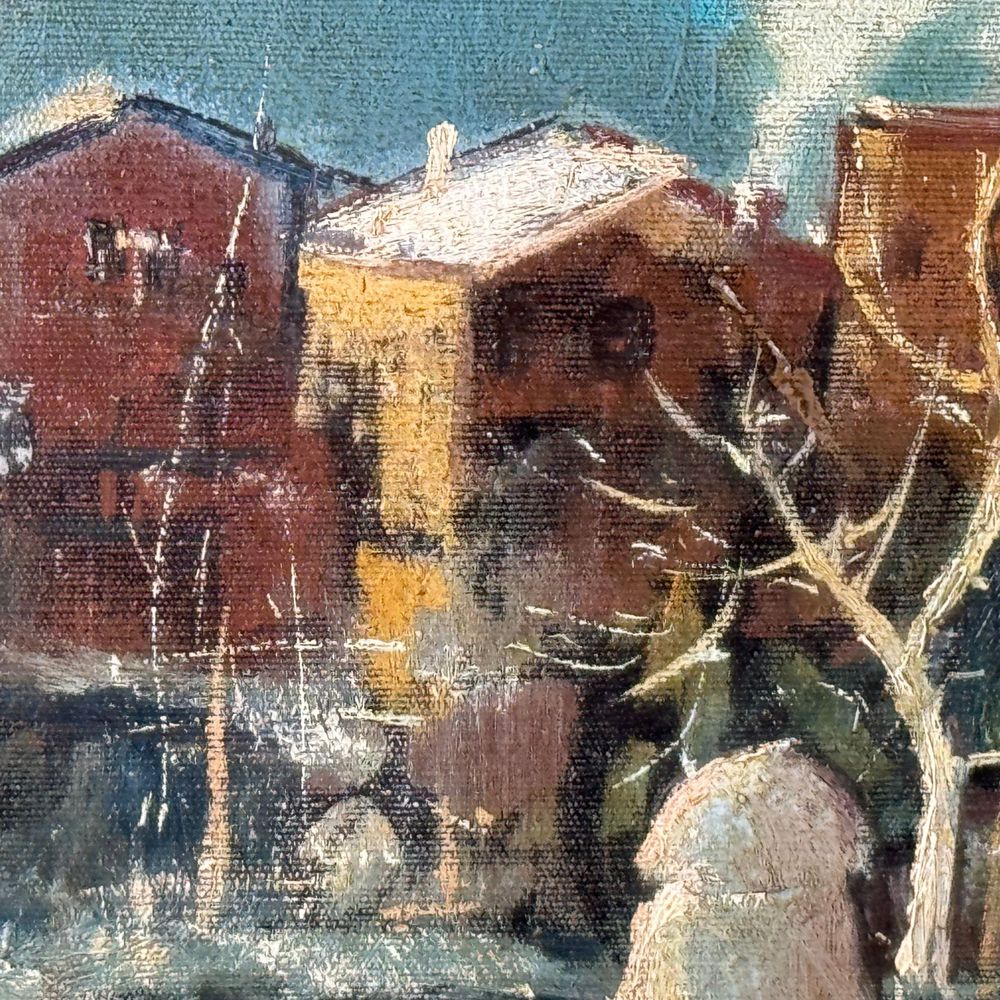 Dipinto olio su tela, periodo XX secolo scuola italiana, raffigurante Scorcio di periferia. Dimensioni interno cornice: 45x35 cm. Dimensioni compreso cornice: 67x57 cm. Reca firma in basso a destra da artista non identificato. Opera in buone condizioni.