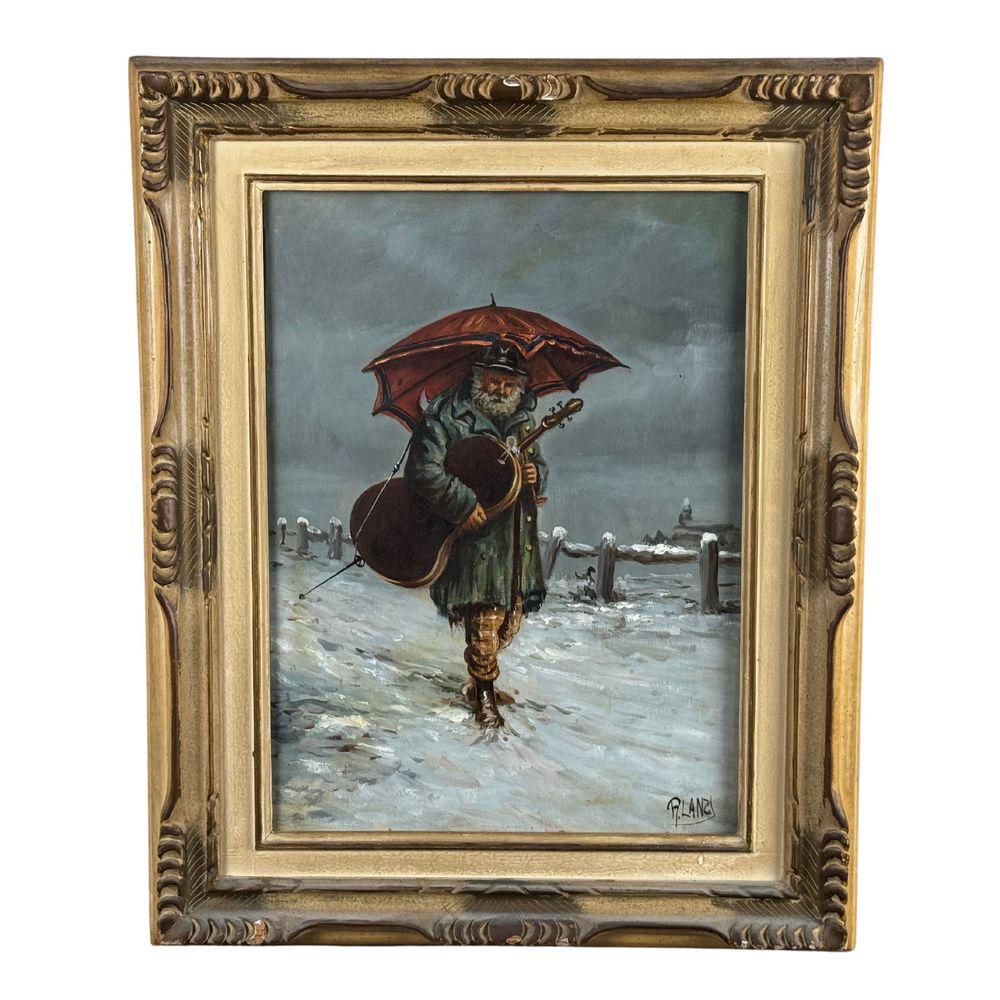 Dipinto olio su tela, periodo inizio XX secolo scuola Italiana, raffigurante Artista di strada. Dimensioni interno cornice: 30x40 cm. Dimensioni compreso cornice: 44x54 cm. Reca firma in basso a destra da R. Lanzi. Opera di eccellente qualità artistica e di ottime condizioni.