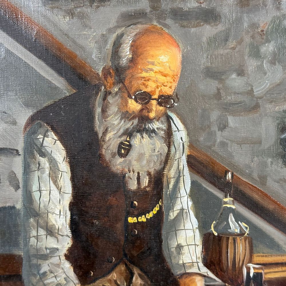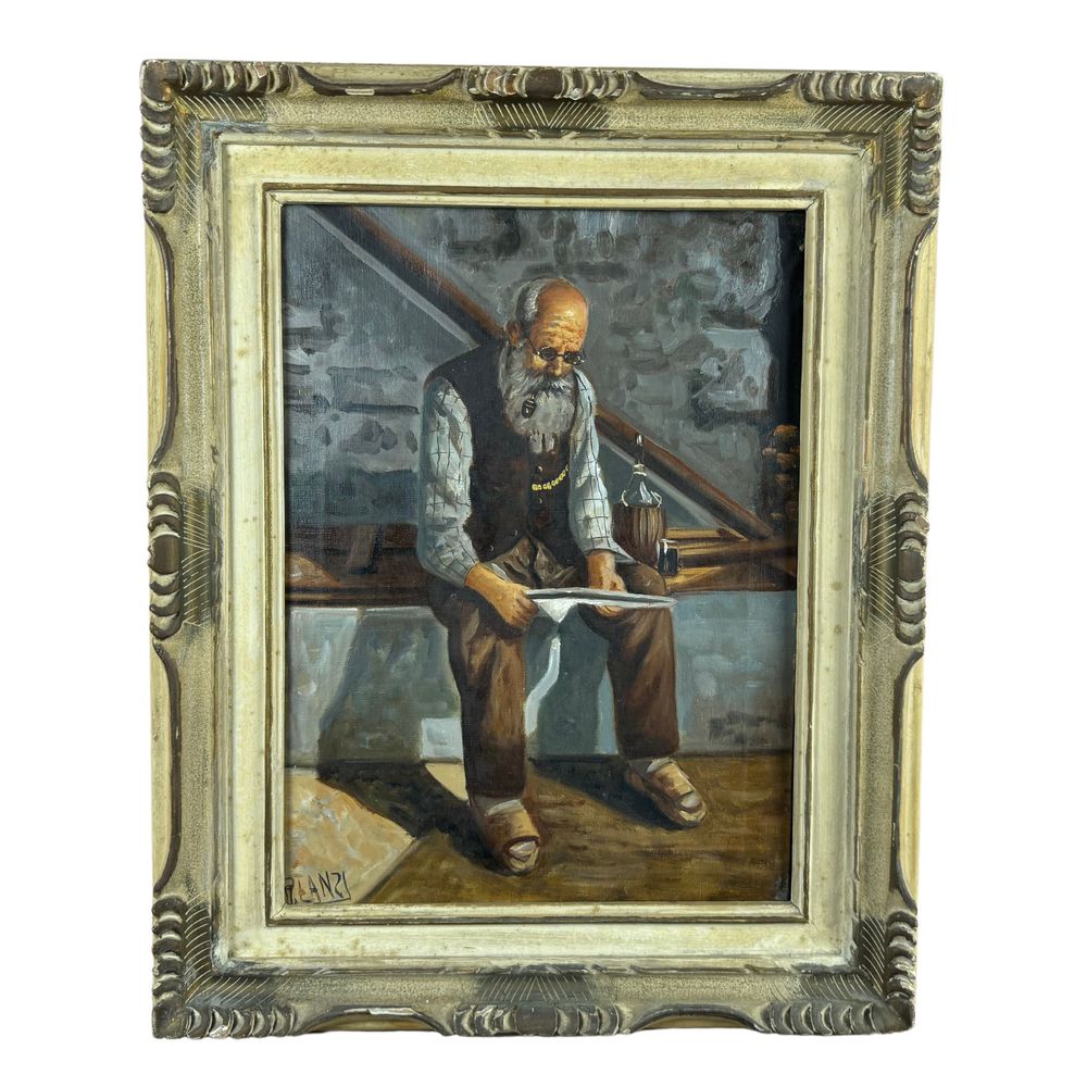 Dipinto olio su tela, periodo inizio del XX secolo scuola italiana, raffigurante Anziano in lettura. Dimensioni interno conrice: 30x40 cm. Dimensioni compreso cornice: 44x54 cm. Reca firma in basso a sinistra da R.Lanzi. Opera in ottime condizioni.