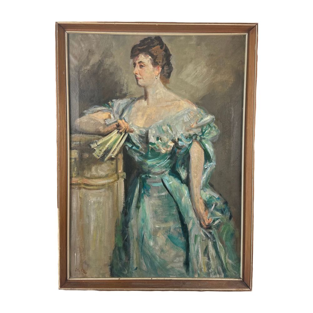 Dipinto olio su tela, periodo XX 1953 secolo scuola Spagnola, raffigurante Ritratto di donna nella maniera impressionista. Dimensioni interno cornice: 50x70 cm. Dimensioni compreso cornice: 54x74 cm. Reca firma in basso a sinistra da artista non identificato. Opera in buone condizioni.