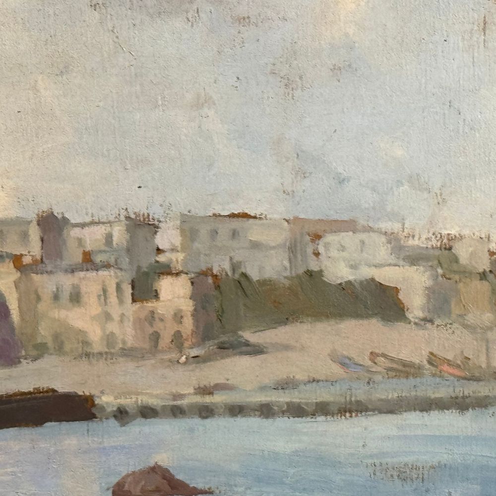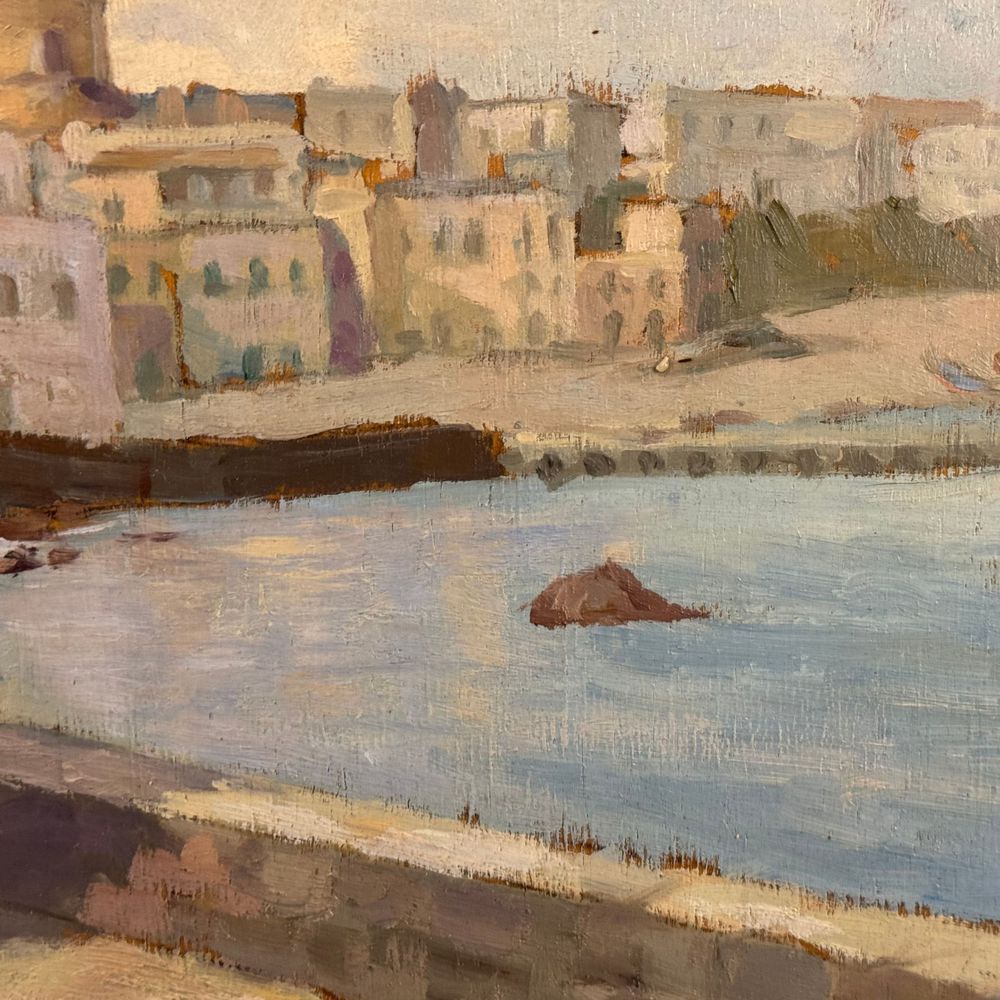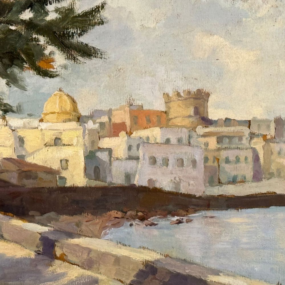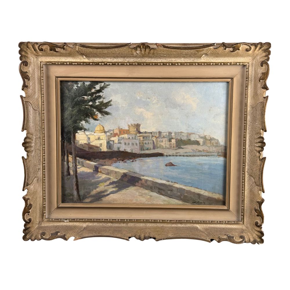 Dipinto olio su tavola, periodo XX secolo scuola Italiana, raffigurante Paesaggio marino (Ischia ?). Dimensioni interno cornice: 40x31 cm. Dimensioni compreso cornice: 56x46 cm. Reca firma in basso a destra da artista non identificato. Opera in buone condizioni.