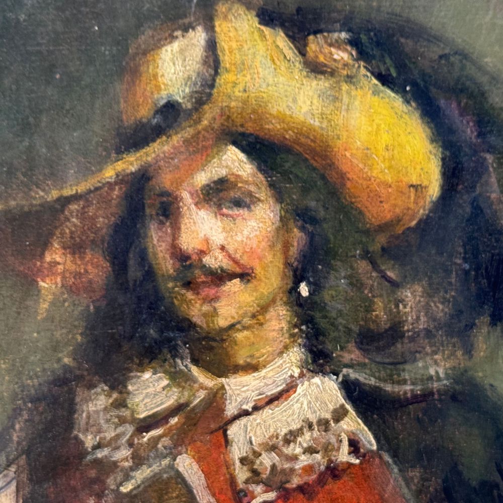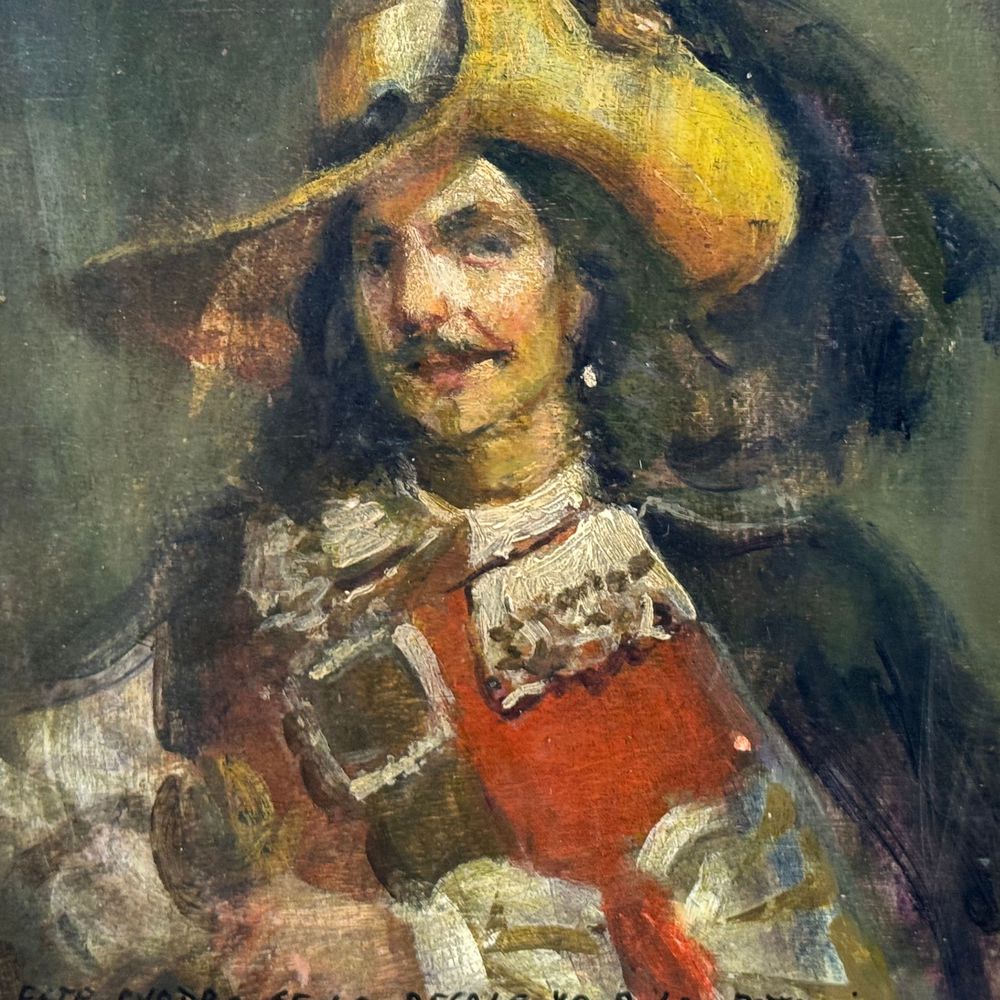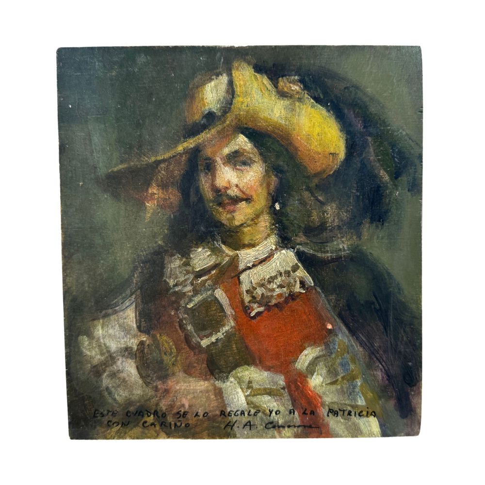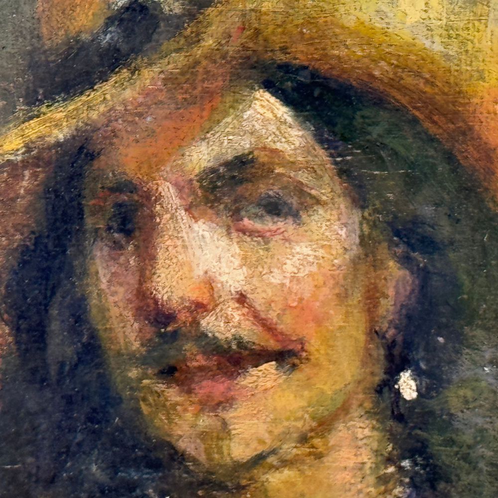 Dipinto olio su pannello, periodo XX secolo scuola Spagnola, raffigurante Ritratto di uomo con cappello nella maniera impressionista. Dimensioni: 18,5x20 cm. Da artista anonimo. Opera in buone condizioni.