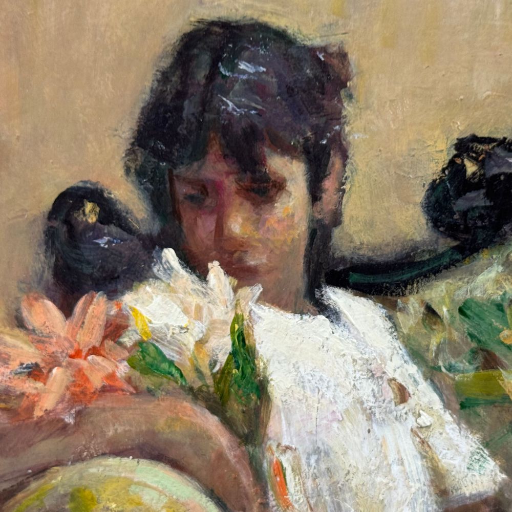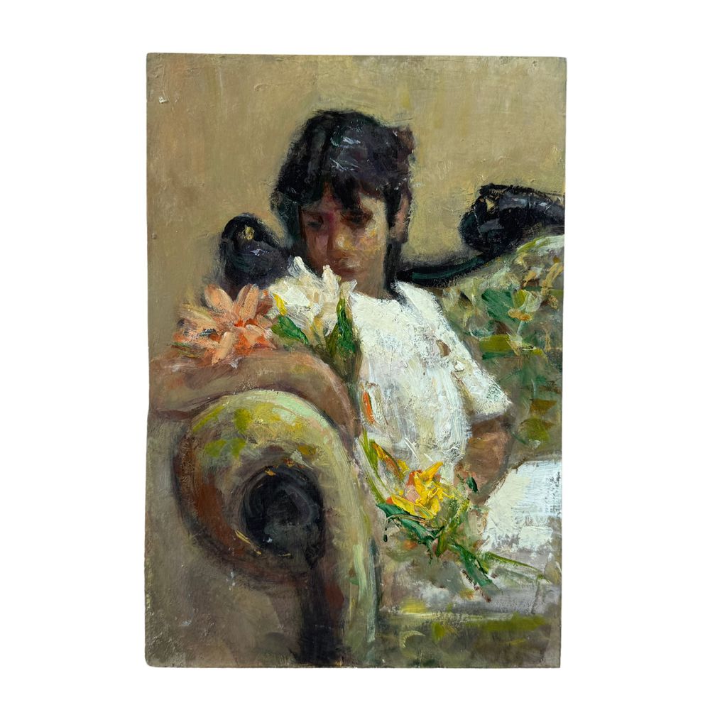 Dipinto olio su tavola, periodo XX secolo scuola Italiana, raffigurante Donna su divano nella maniera impressionista. Dimensioni: 26x18 cm. Da artista anonimo. Opera in buone condizioni.