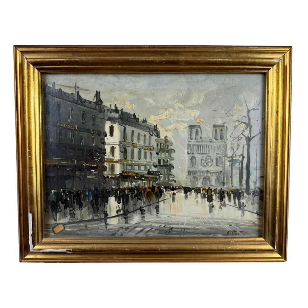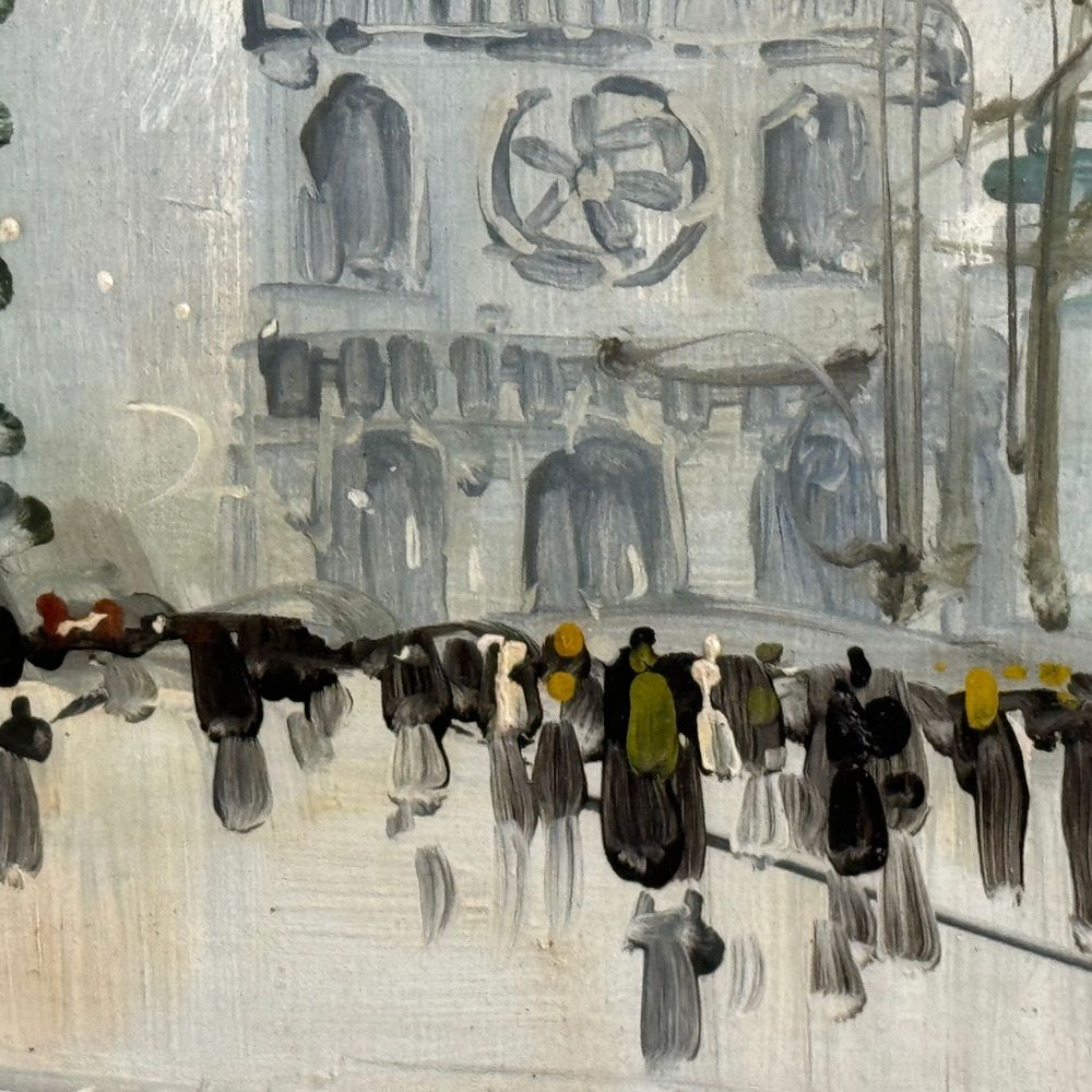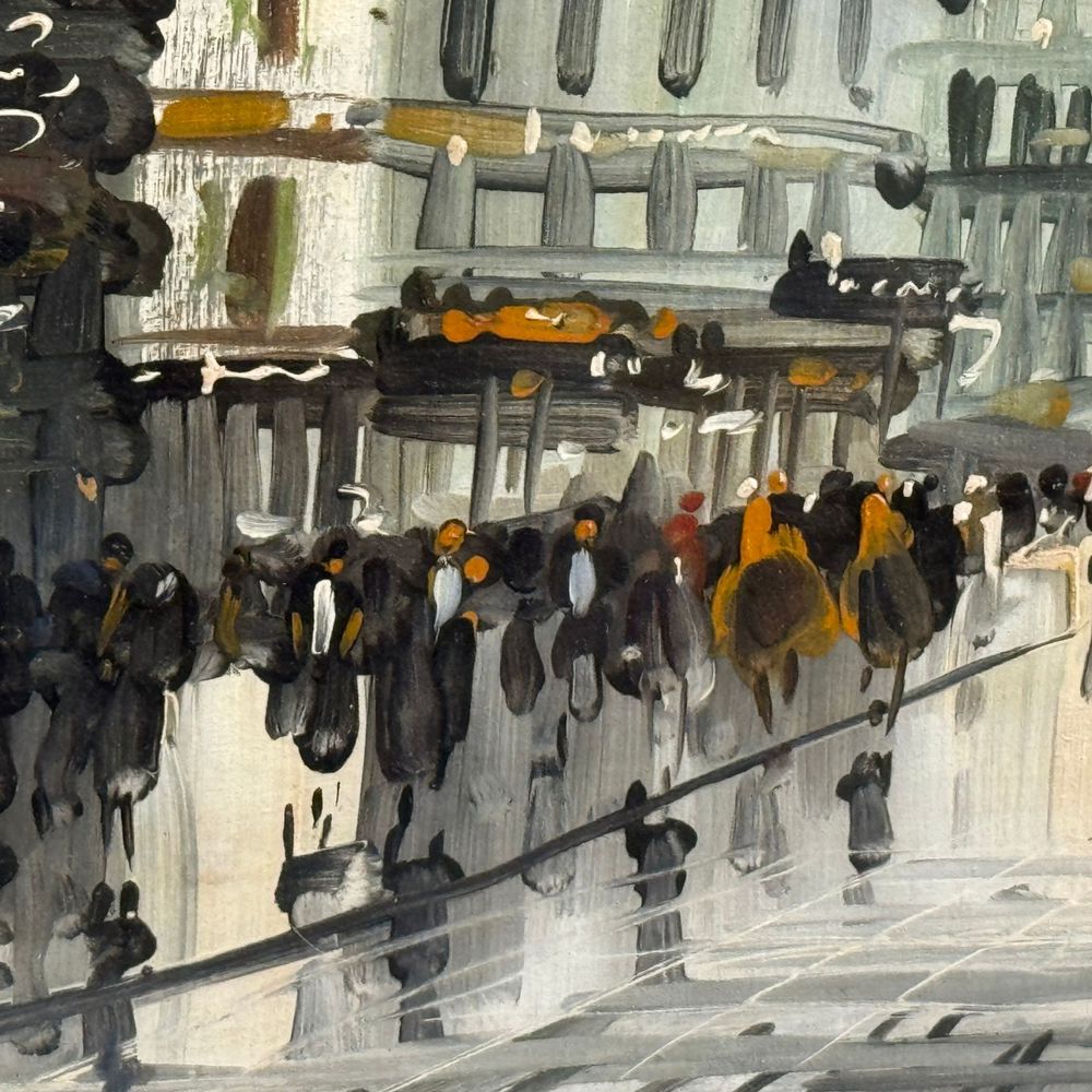 Dipinto olio su tela, periodo XX secolo scuola Italiana, raffigurante Strada con personaggi. Dimensioni interno cornice: 40x30 cm. Dimensioni compreso cornice: 48x38 cm. Reca firma in basso a destra da artista non identificato. Opera in buone condizioni.