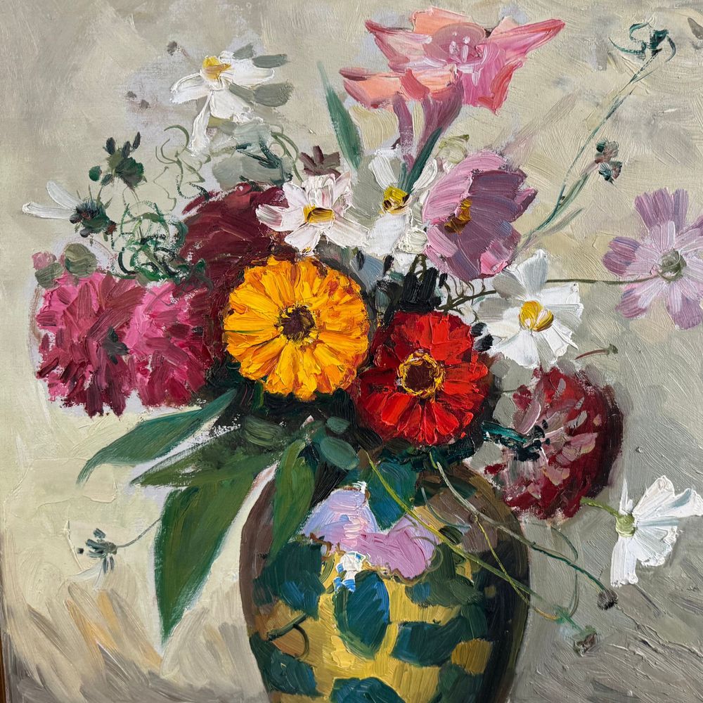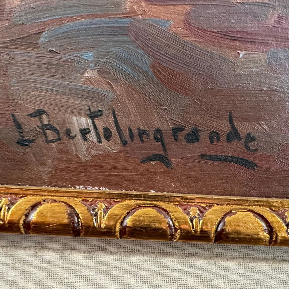 Dipinto olio su tela, periodo XX secolo raffigurante Vaso con fiori. Dimensioni interno cornice: 50x60 cm. Reca firma in basso a sinistra da L. Bertolingrande.