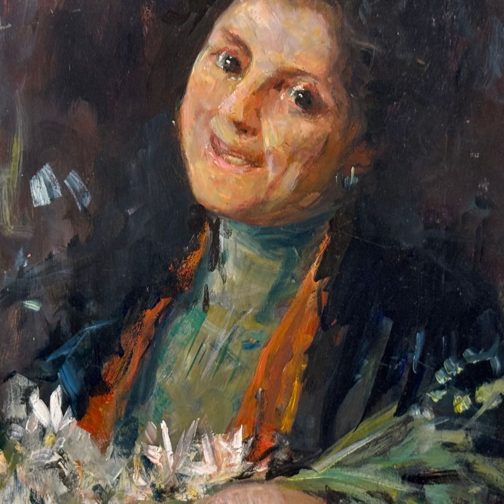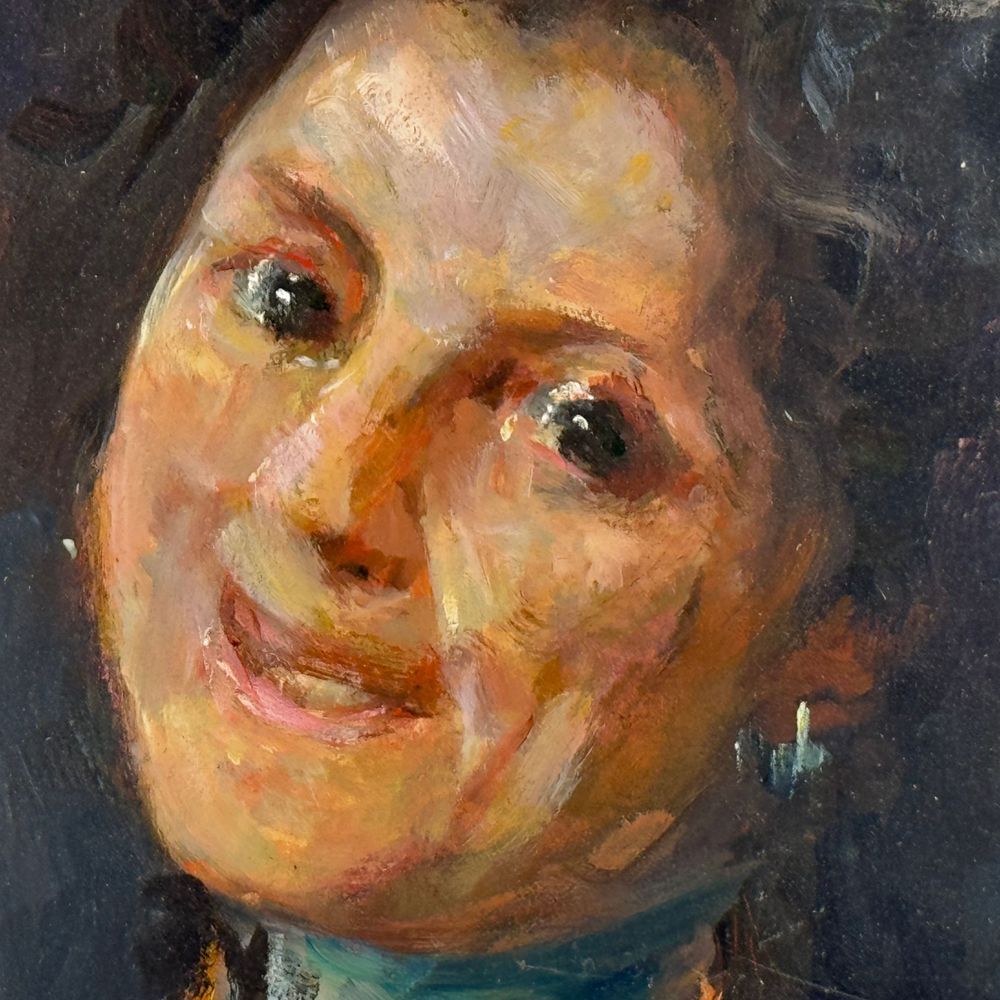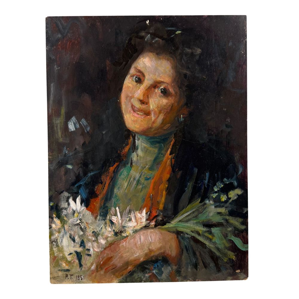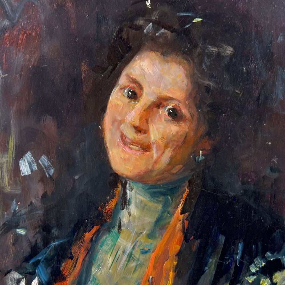 Dipinto olio su pannello, periodo XX secolo scuola Italiana, raffigurante Ritratto di donna nella maniera impressionista. Dimensioni: 40x30 cm. Da artista anonimo. Opera in buone condizioni.