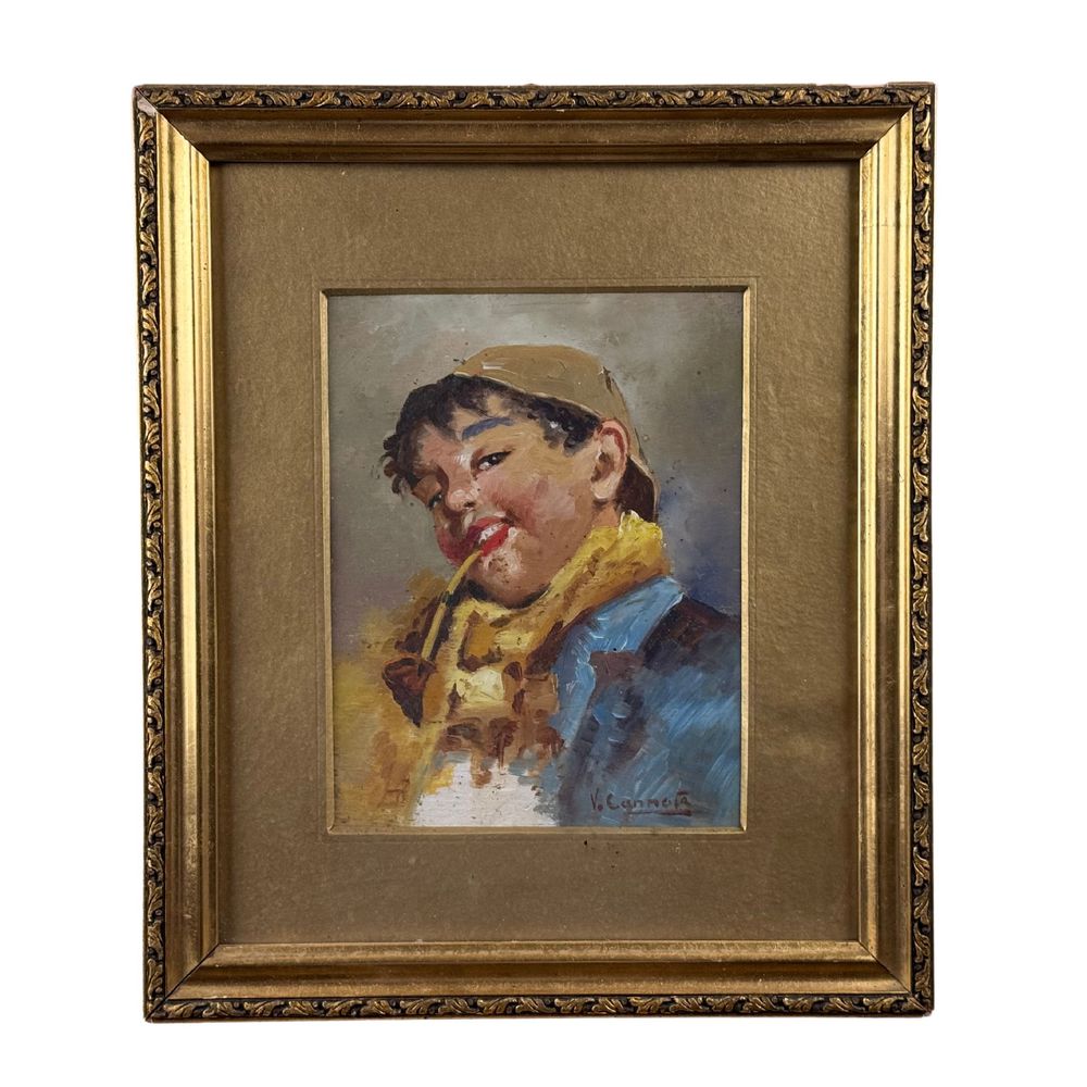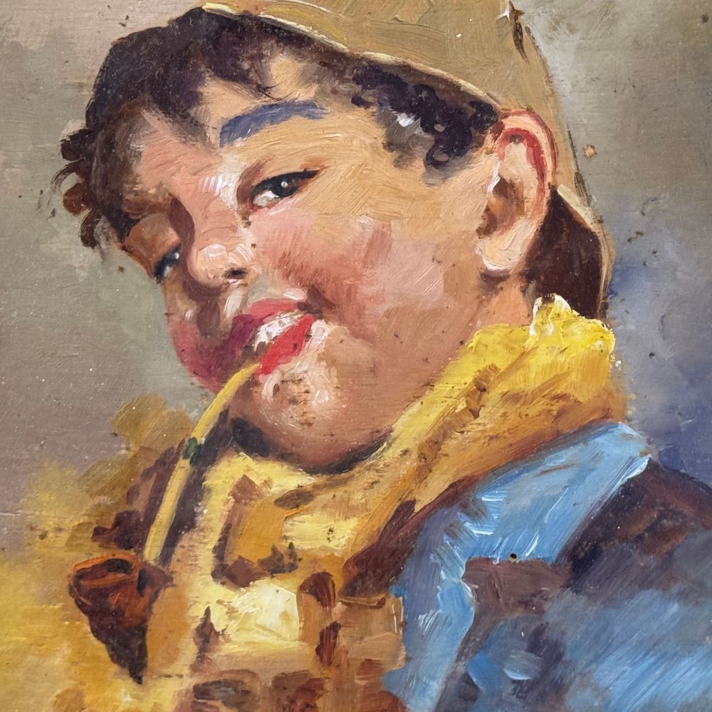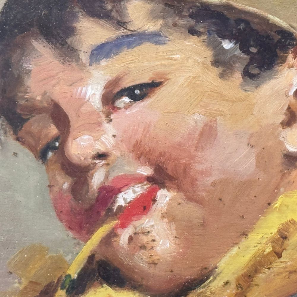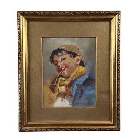 Dipinto olio su tavola, periodo XX secolo scuola Italiana, raffigurante Ritratto di bambino. Dimensioni interno cornice: 17x22 cm. Dimensioni compreso cornice: 37x32 cm. Reca firma in basso a destra da artista non identificato. Opera in buone condizioni.