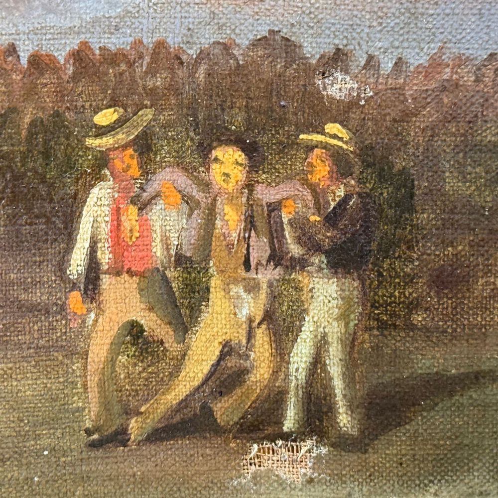 Dipinto olio su tela, periodo XIX secolo scuola Italiana, raffigurante Scena popolana napoletana Dimensioni interno cornice: 40x30 cm. Lievi segni di vissuto come da foto inserite. Da artista anonimo.