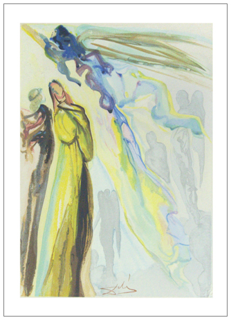 SALVADOR DALI’ Figueres (Spagna) 1904 – Figueres (Spagna) 1989 Le due corone di spiriti Tav. XI 1974 Xilografia a colori eseguita da incisione su matrice di legno es.99/200. Firma in b. al c., timbro a secco “Edizioni Pregiate, Roma” in b. a d. (28 x 21 foglio – 24,5 x 18 xilo.) Sul verso etichetta Edizioni Pregiate S.p.A., Direzione Generale Roma + certificato di autenticità firmato dall’artista.