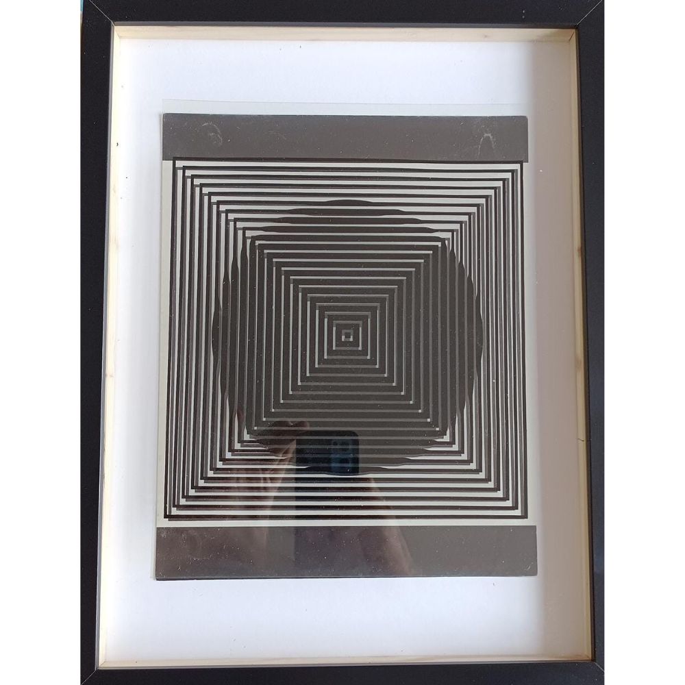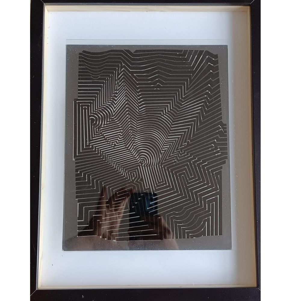 Victor Vasarely (Pécs 1906 - Parigi 1997). Composizione cinetica, 1973. Doppia serigrafia. Multiplo composto da una serigrafia su carta e da un foglio di plexiglass serigrafato. Il distanziamento tra i due fogli permette di ottenere effetti ottico cinetico di movimento.