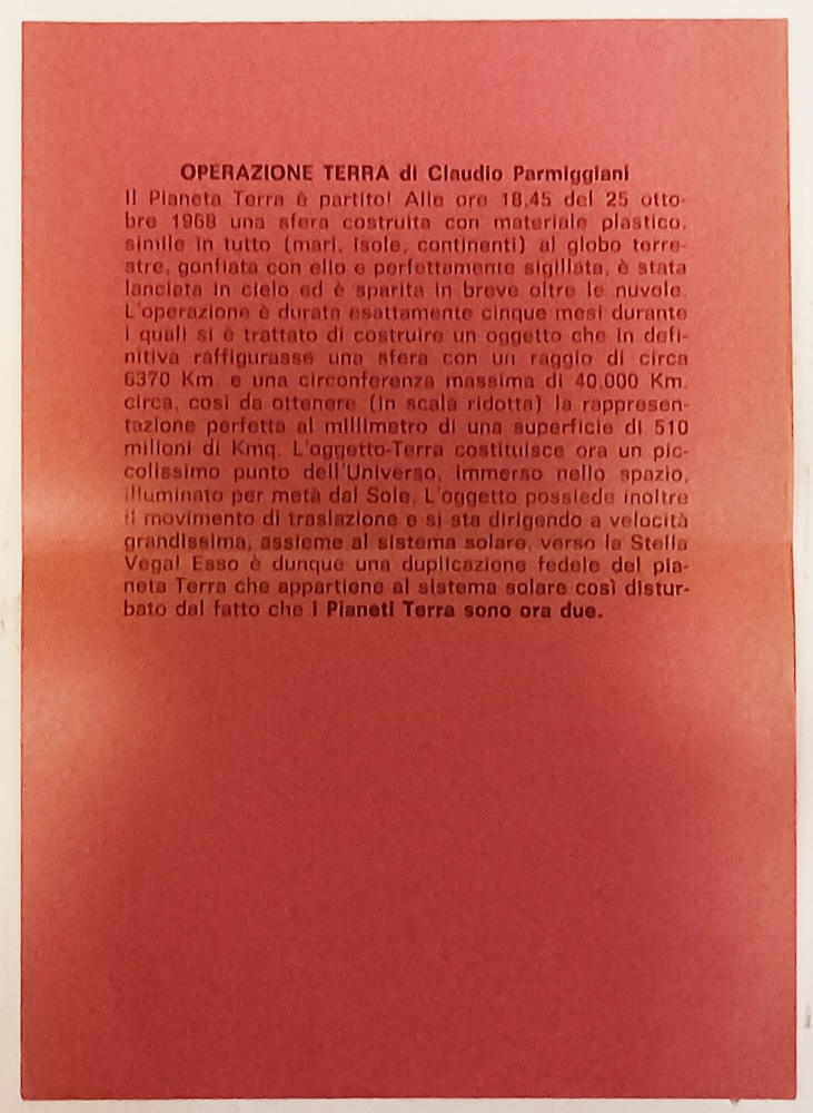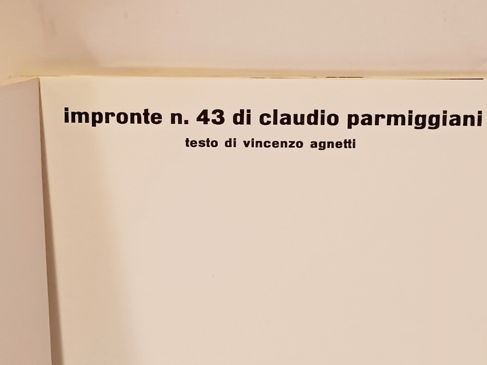 Claudio Parmiggiani (Luzzara 1943). Impronte 43. Cartella completa contenente 43 impronte uguali. Testo di Vincenzo Agnetti. Accompagnato da testo Operazione Terra di Claudio Parmiggiani.