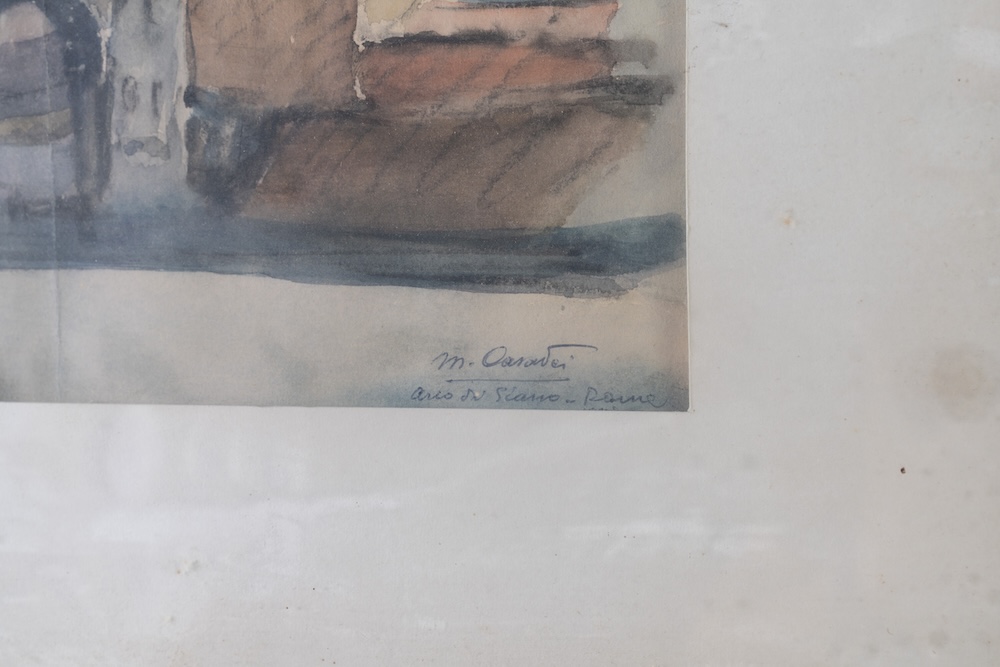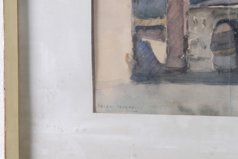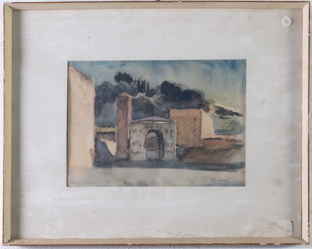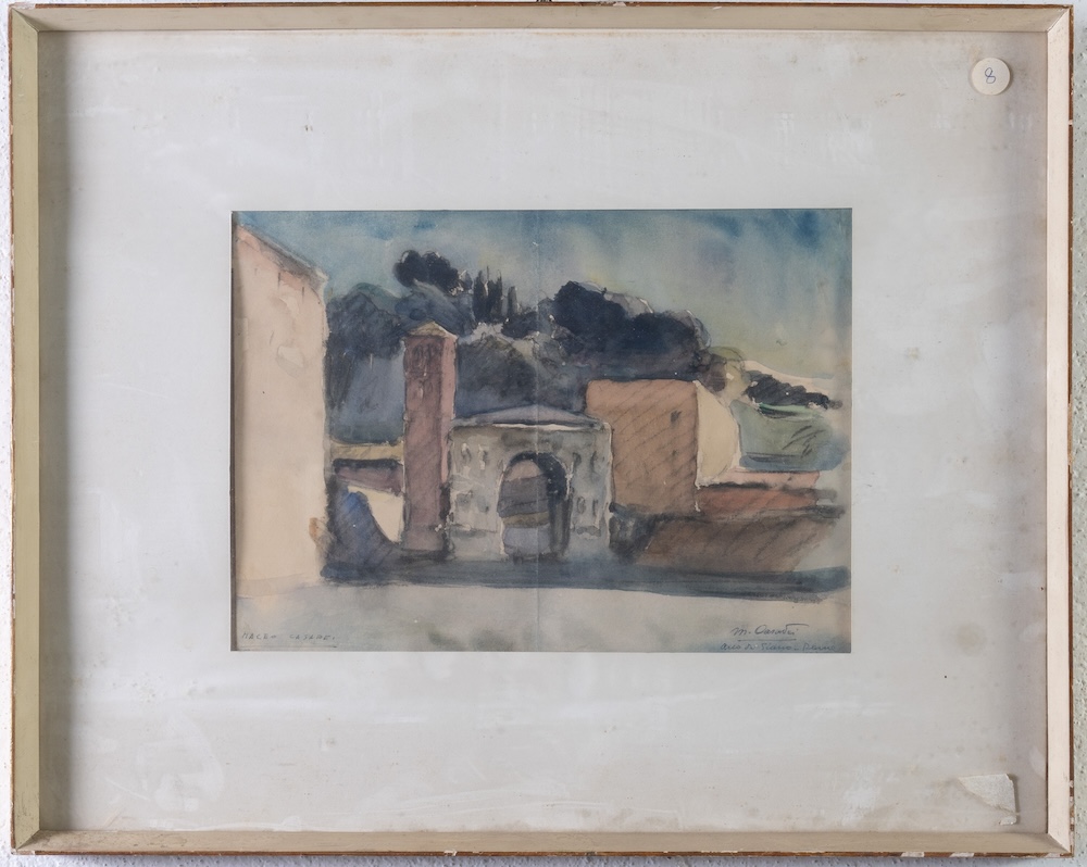 Maceo Casadei (Forlì 1899 - 1992). Arco di Giano, Roma. Acquarello su carta. Firmato in basso a sinistra. Firmato e titolato in basso a destra. Cm. 21x30.