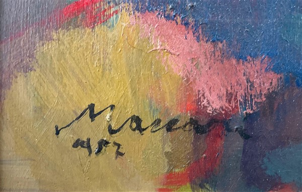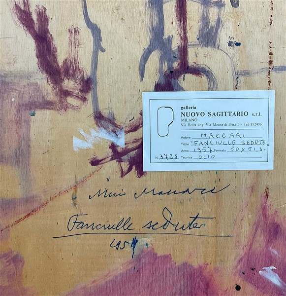 Mino Maccari "Fanciulle sedute" 1957 olio su compensato cm 50x50 firmato e datat