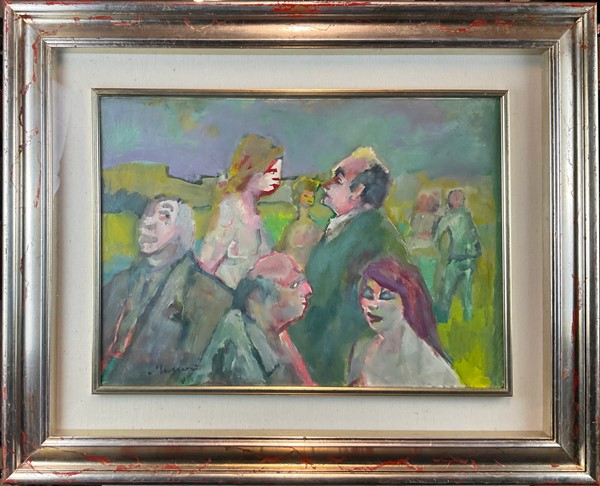 Mino Maccari "Gruppo" 1975 olio su tela cm 40x55 firmato in basso a sinistra, is
