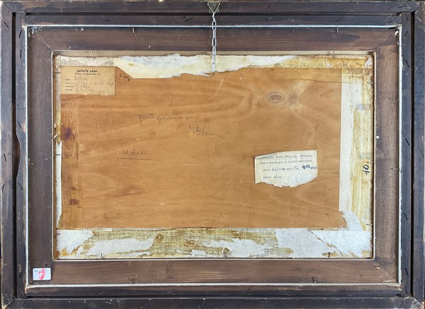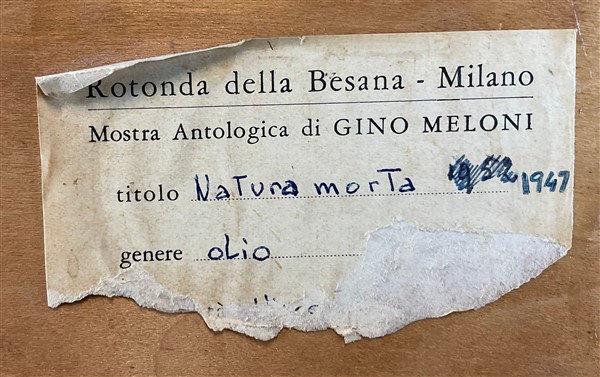 "Mostra antologica di Gino Meloni" Rotonda della Besana, Milano, 1971 (etichetta al retro)