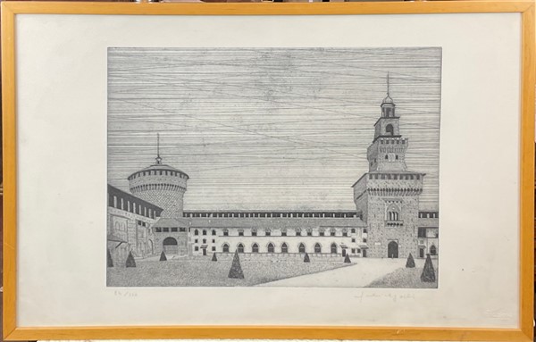 Federica Galli "Castello Sforzesco Milano" acquaforte (lastra cm 30x39,5; fogli