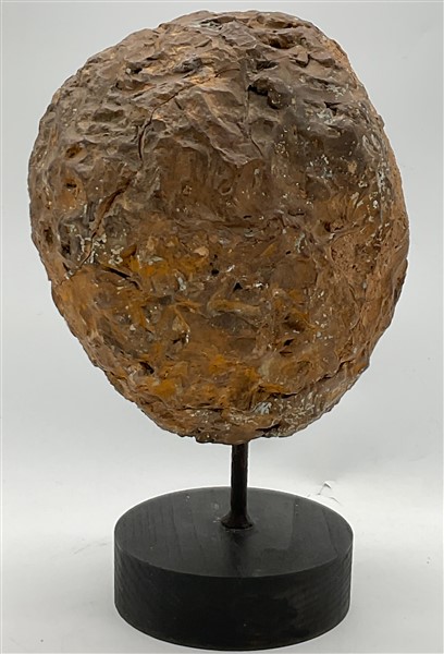 scultura in terracotta su base in legno