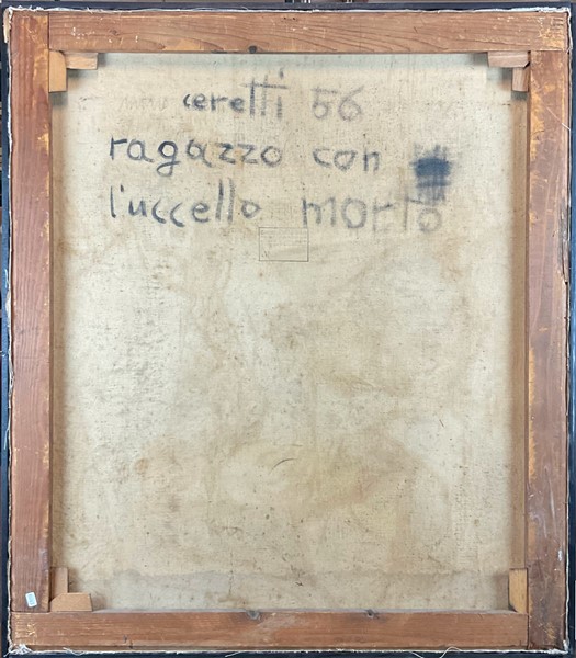 Mino Ceretti "Ragazzo con l'uccello morto" 1956 olio su tela cm 80x70 firmato e