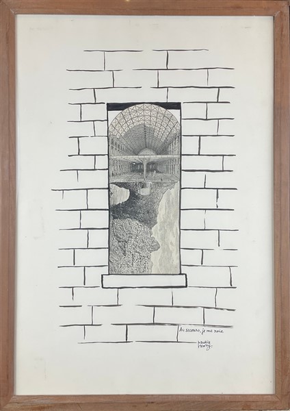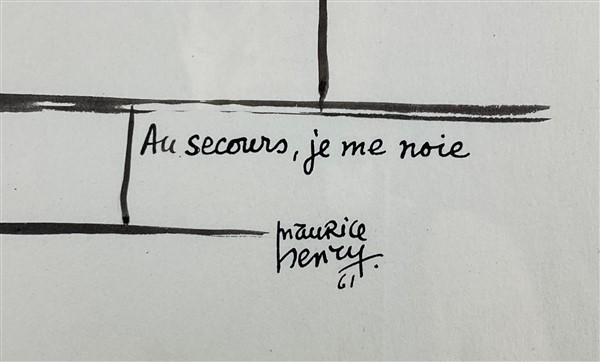 Maurice Henry "Au secours je me noie" 1961 collage e china su carta cm 47x32 fir