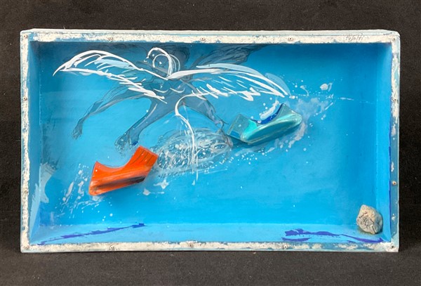 Silvio Pasotti "Sestri - Ibiza" 1997 tecnica mista su legno con due elementi in