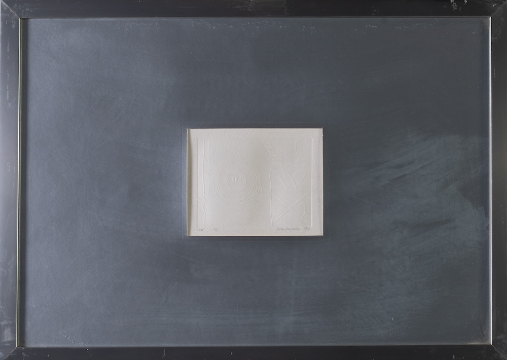 Giorgio Bompadre (1929 - 2005). Wo, 1964. Calcografia su carta. Firmata e datata a matita in basso a destra. Titolata e numerata a matita in basso a sinistra 10/25. Cm. 10x12.