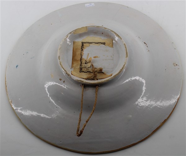 Piatto in ceramica smaltata decorato nel cavetto con figura femminile nello sti